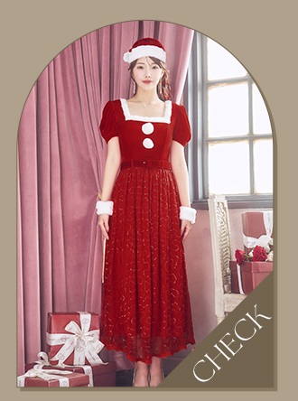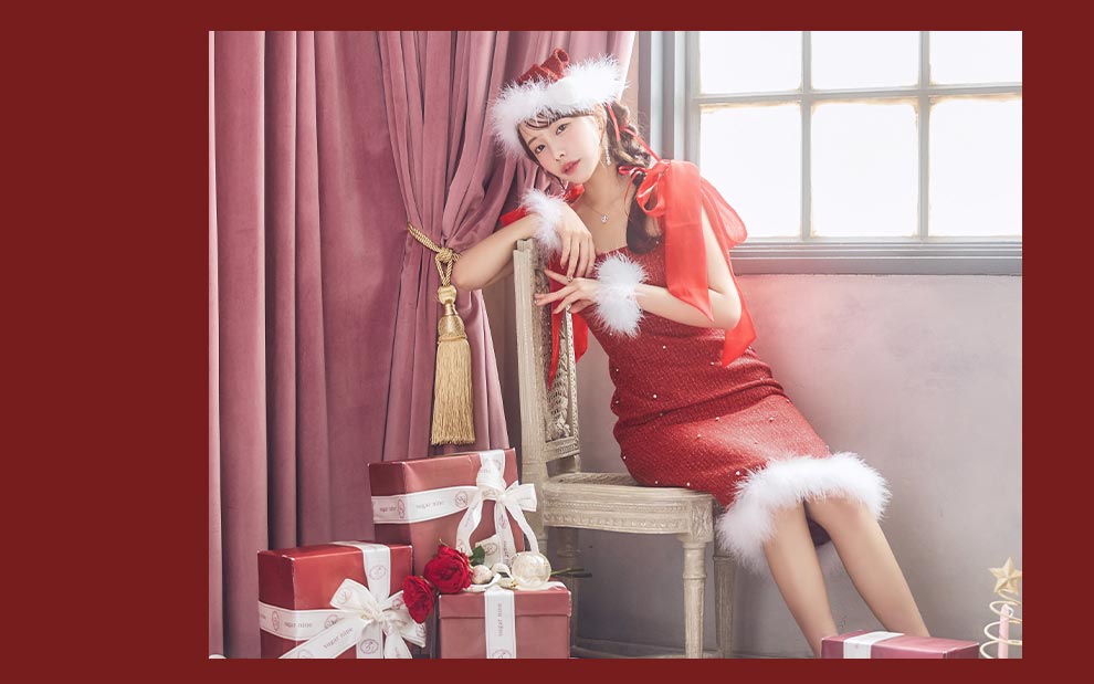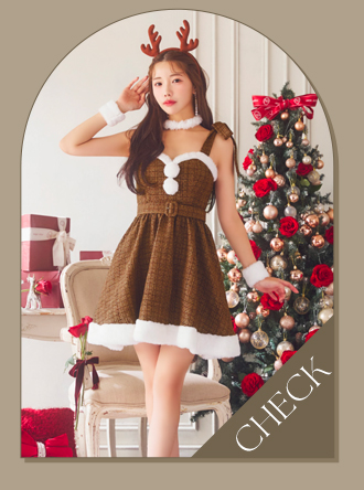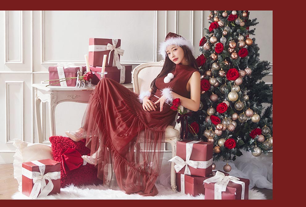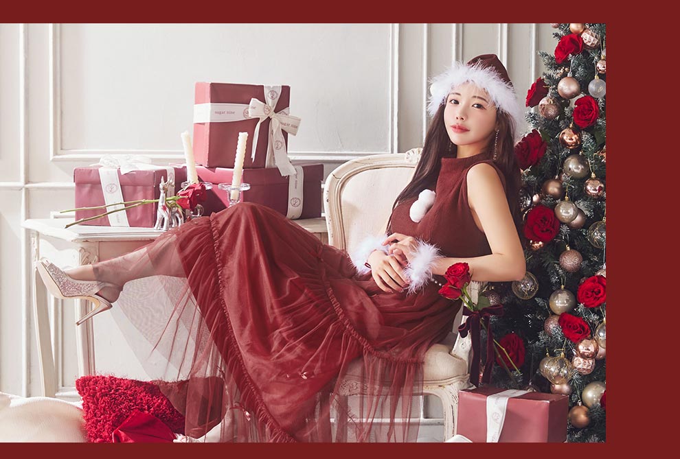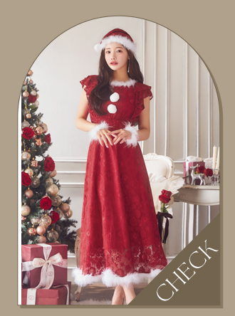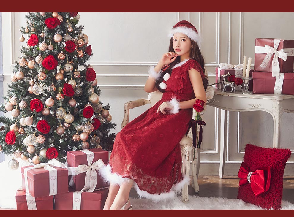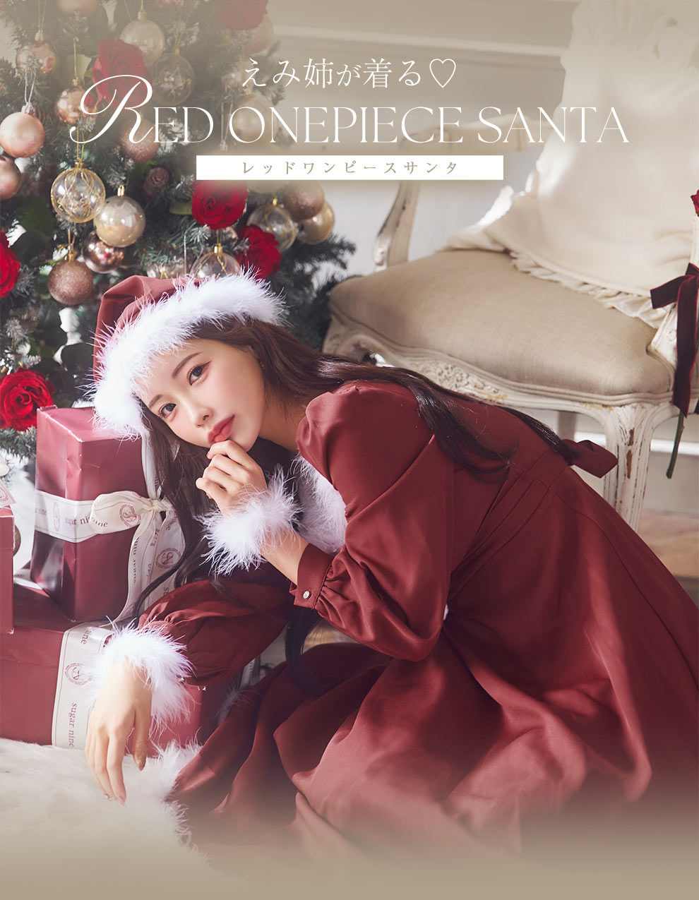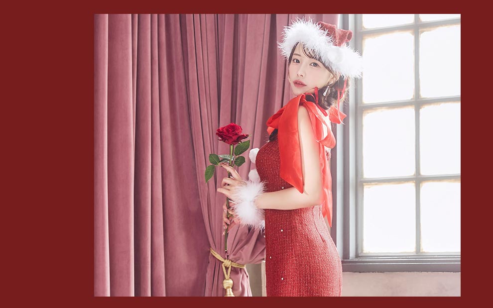 リボンを散りばめたトレンドライクなサンタコスプレ