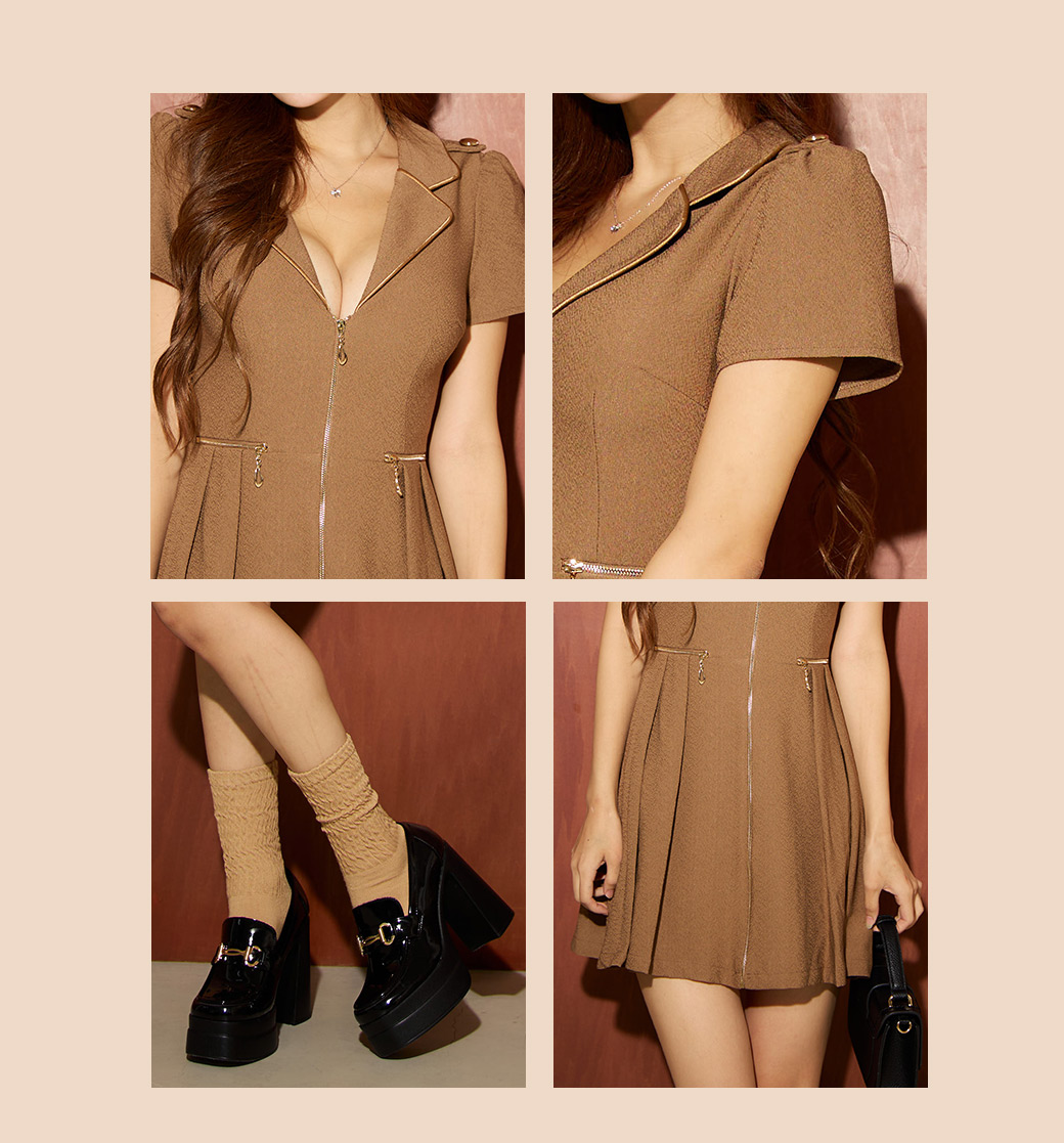 ホワイトのミニプリーツが今っぽいアクセントに。