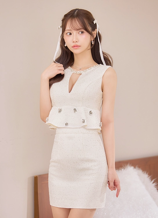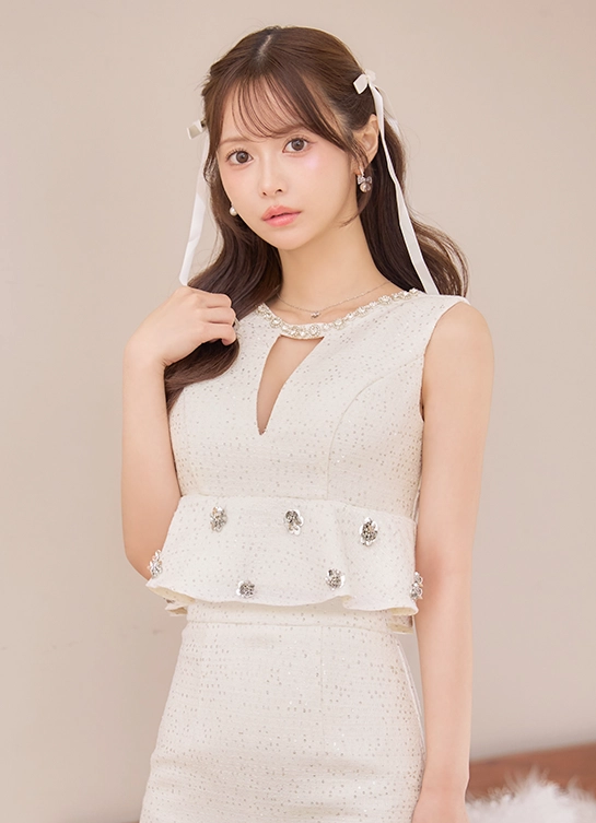 ピュアホワイトのツイードが甘さだけじゃなく品もプラス。