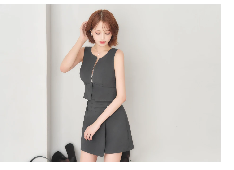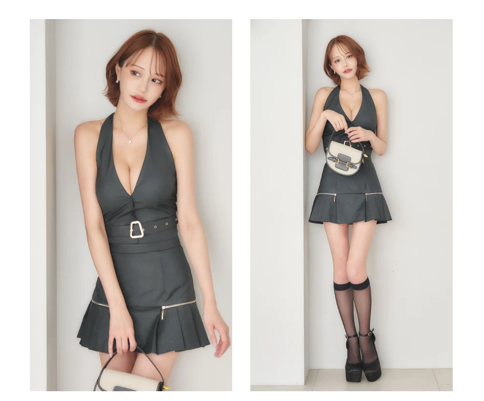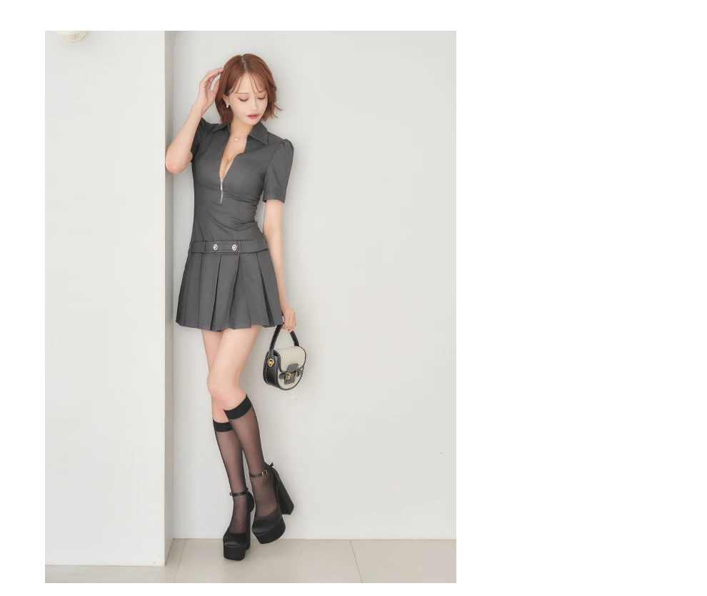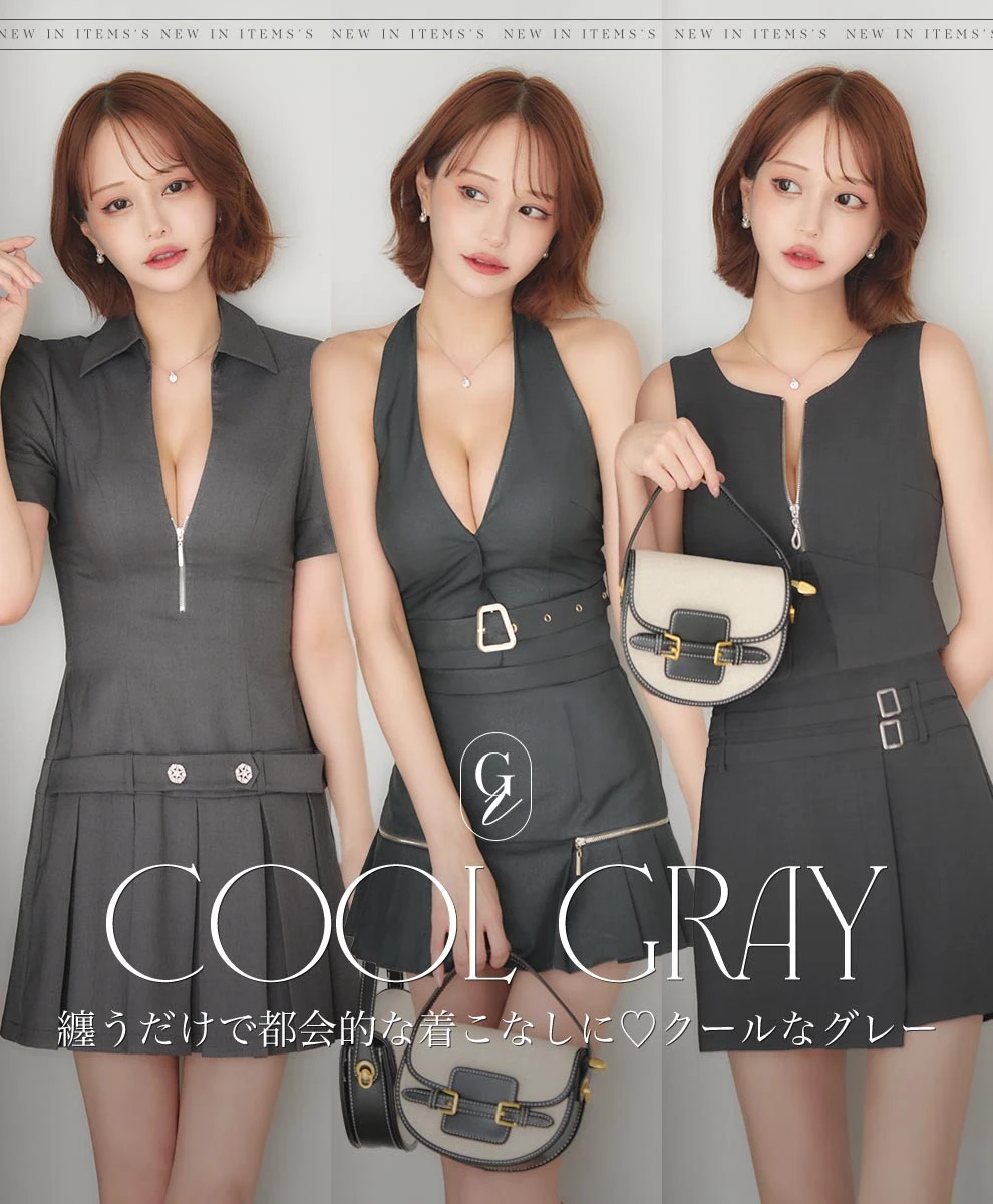 大胆な胸元ジップとフォーマルな襟付きデザインのバランスが◎