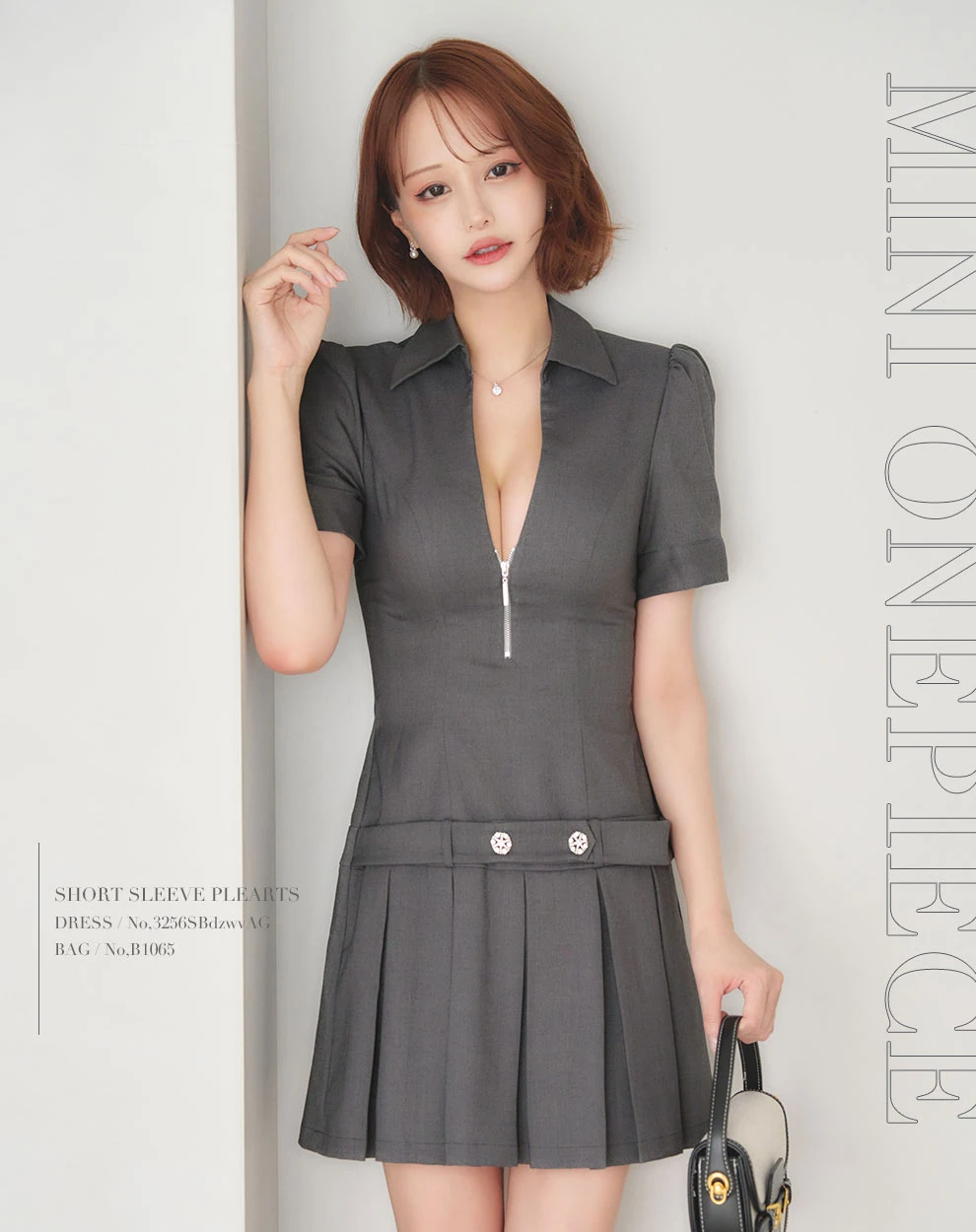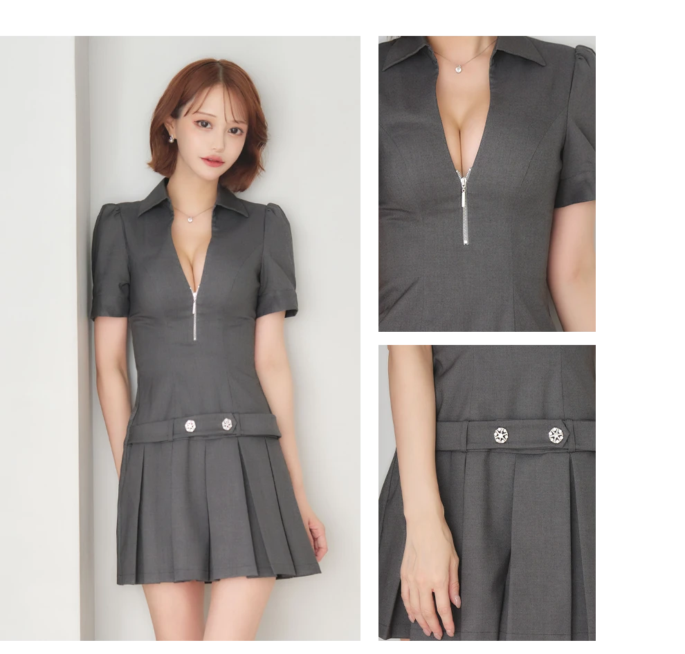 フロントジッププリーツスカートドレス