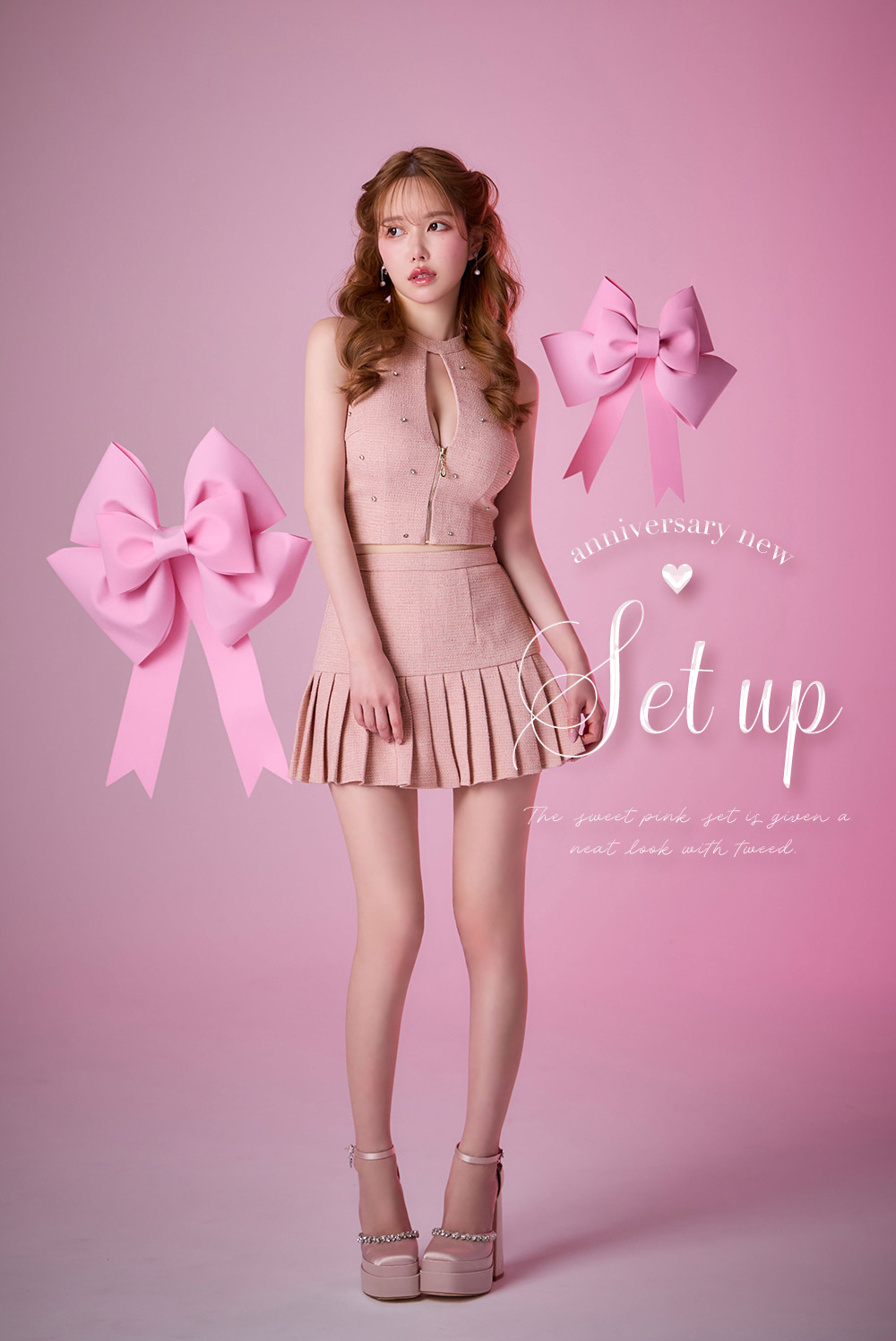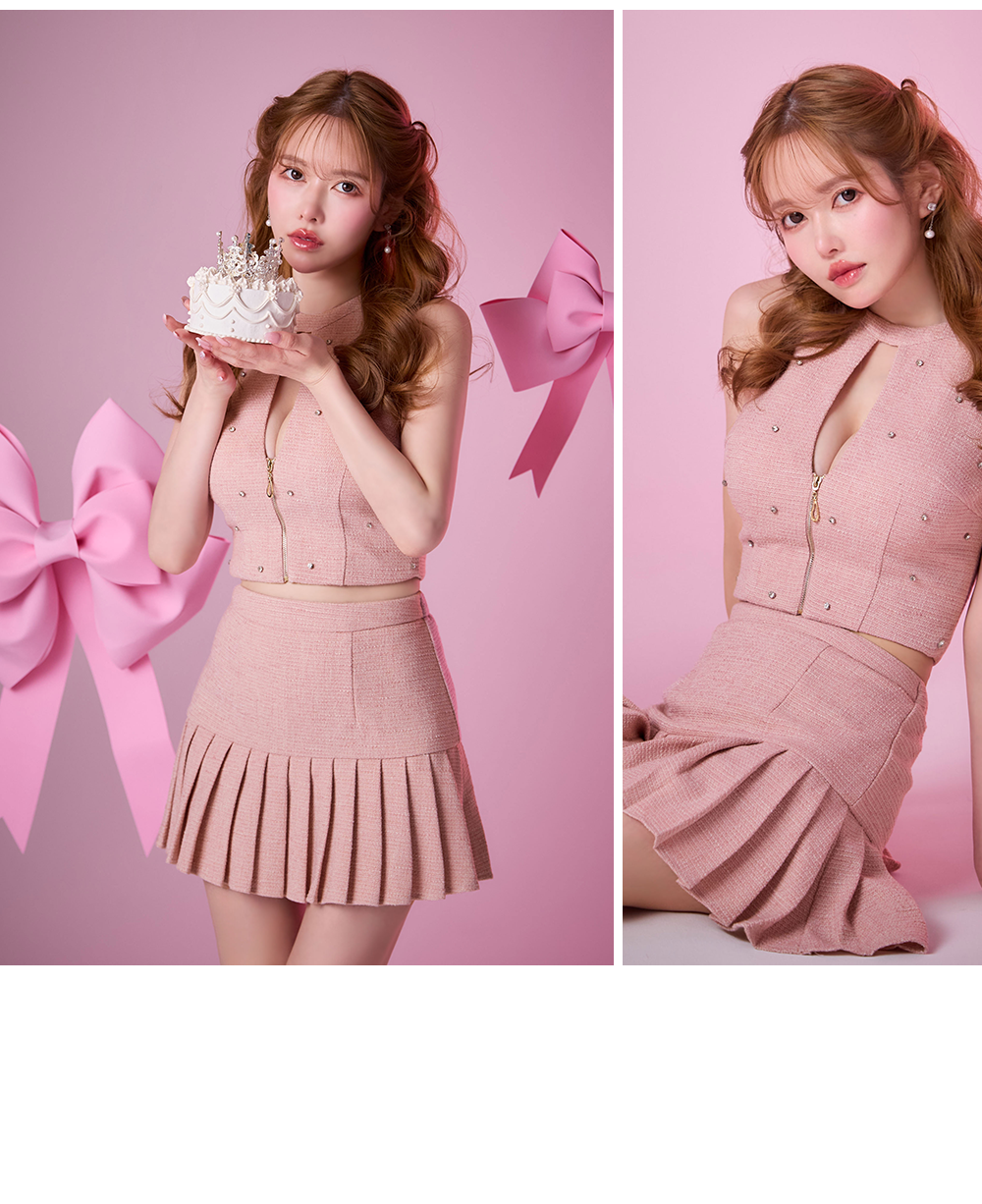 【ツイードプリーツセットアップ】