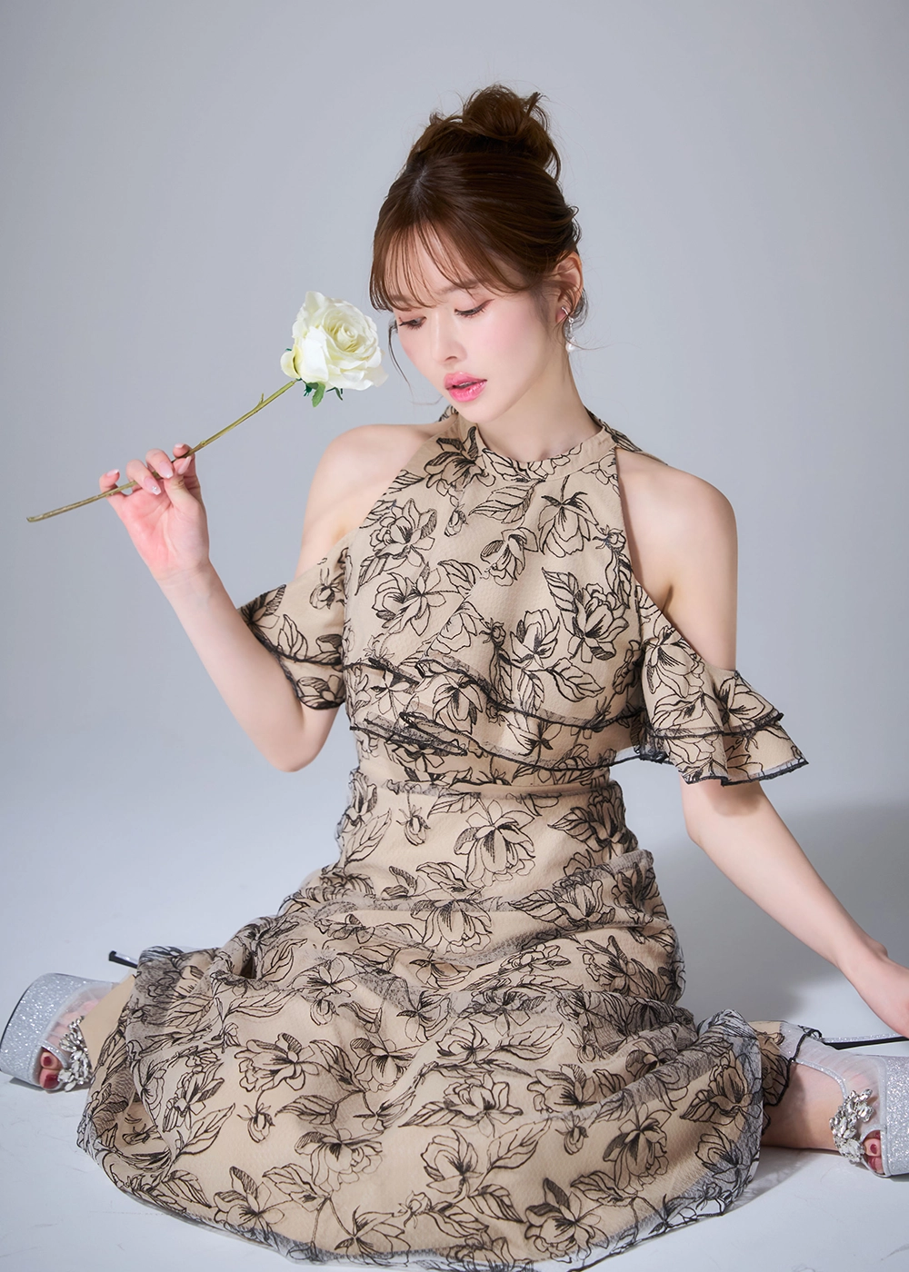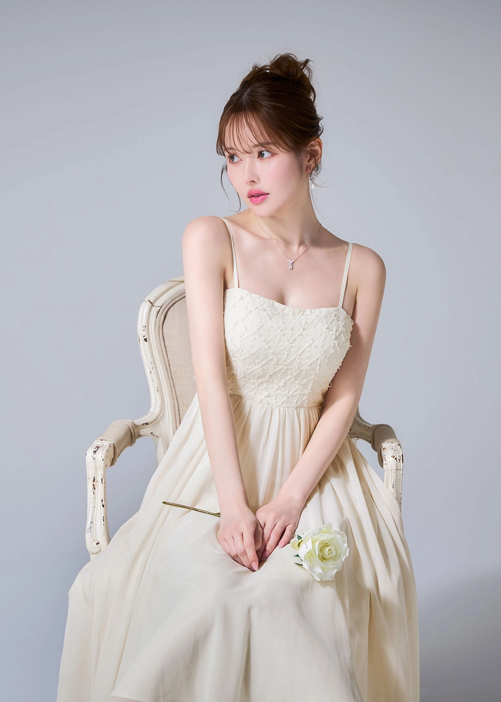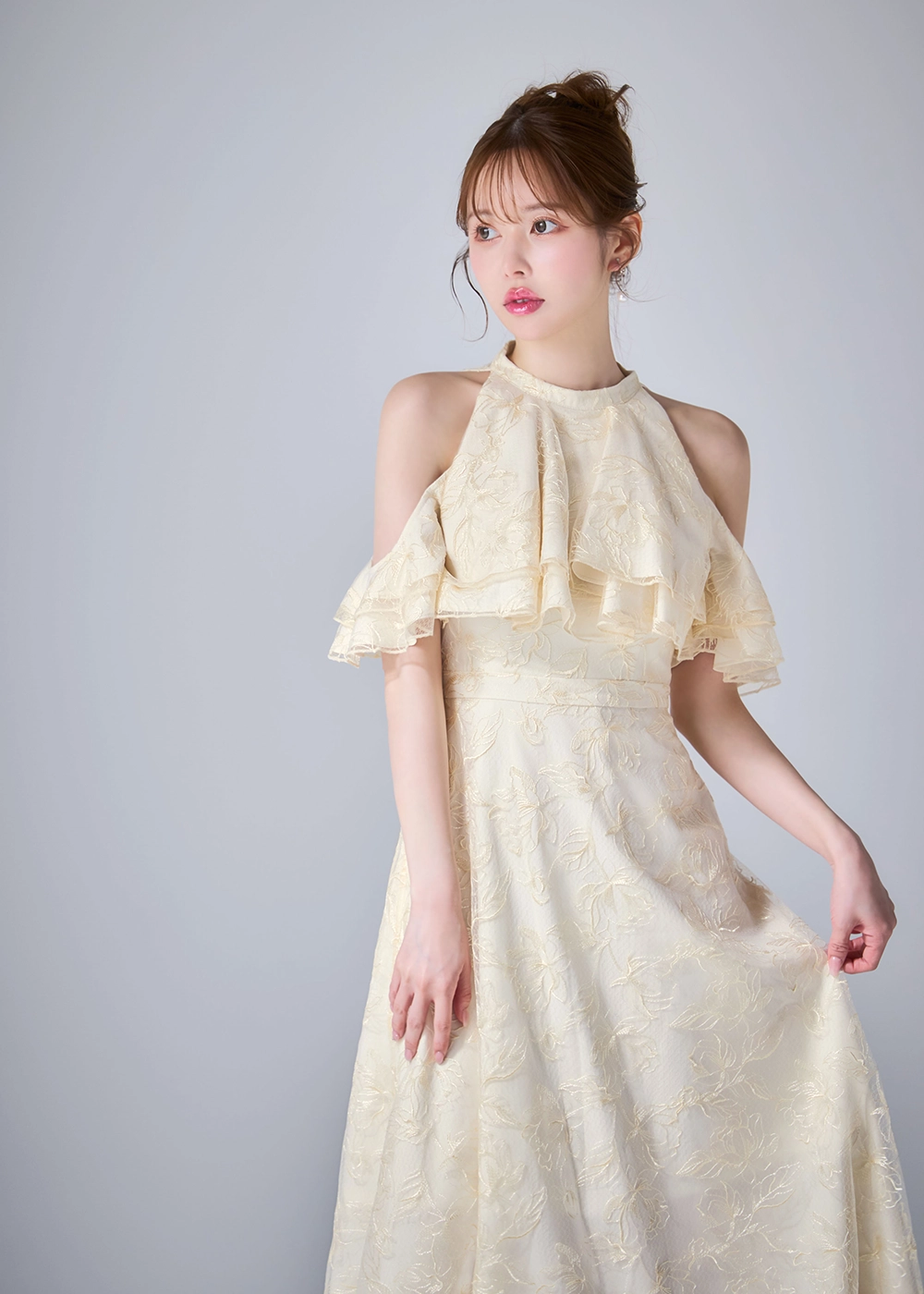 立体フラワーレースを重ねた儚げな印象。
