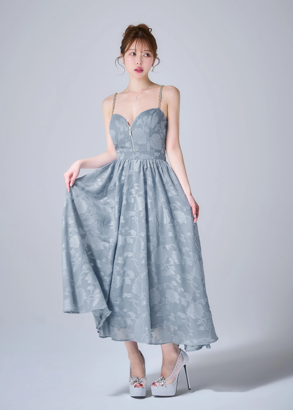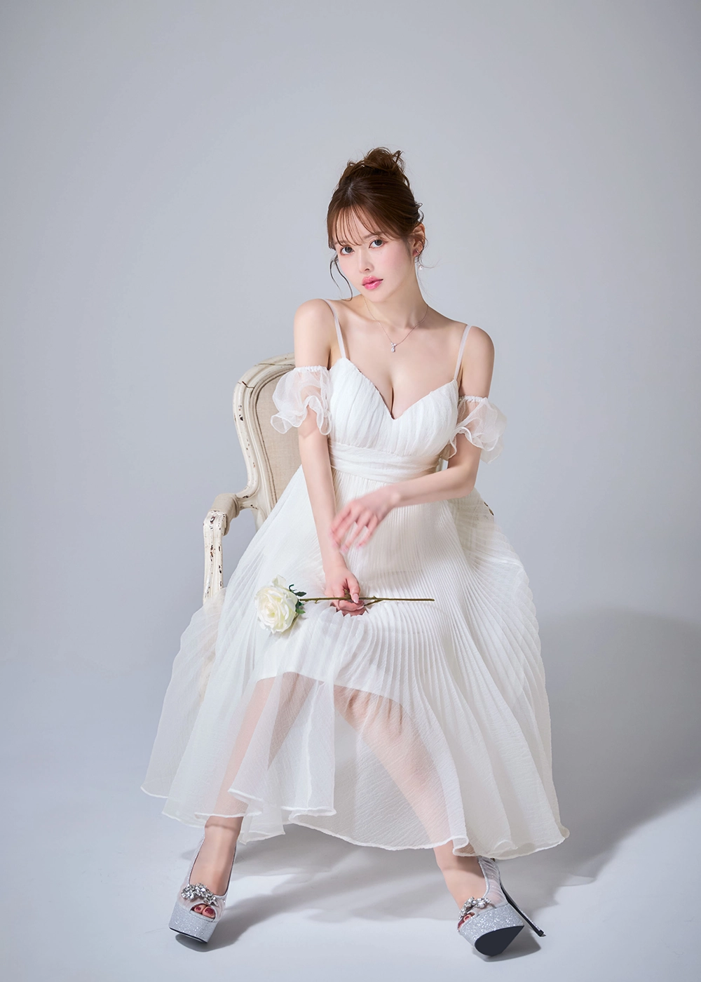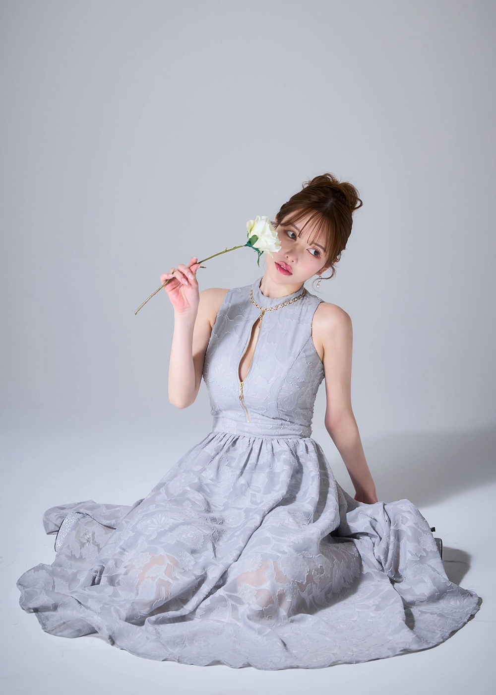 立体フラワーレースを重ねた儚げな印象。