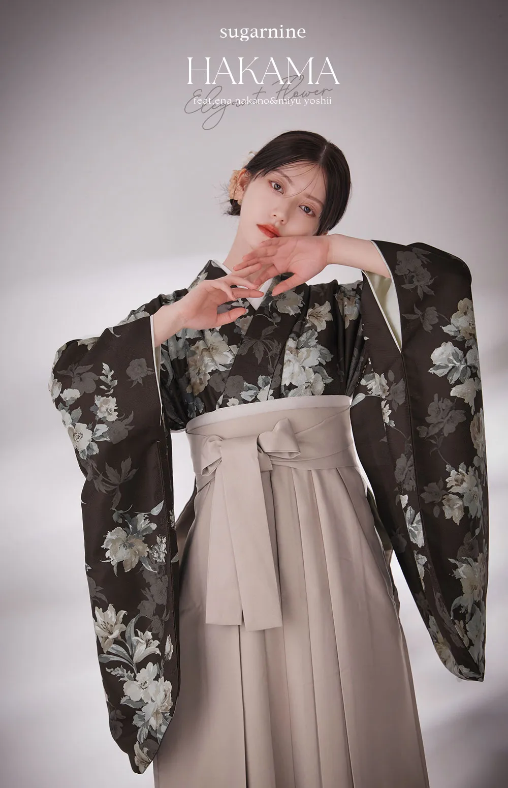 古風さとトレンドの融合が新しい、小花柄袴。