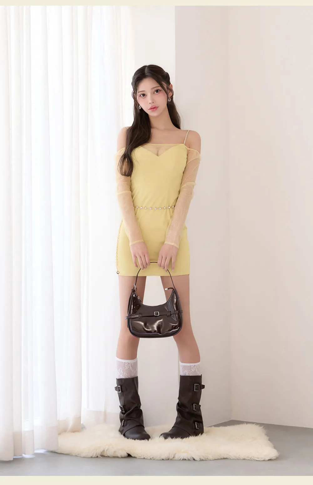 元気なイエローもセクシーに着こなす。