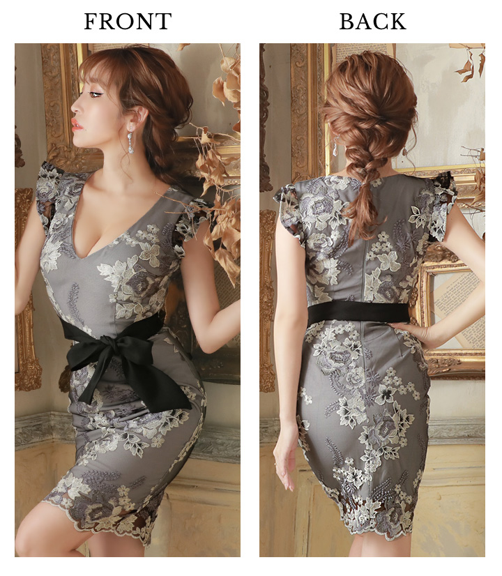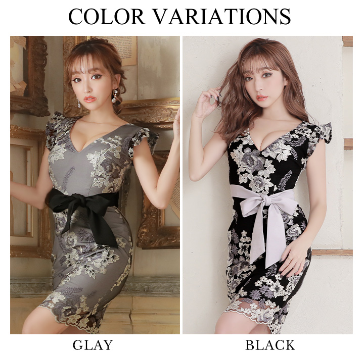 SALE!再入荷!ラグジュアリーフラワー/花柄刺繍/リボンベルト/キャバドレス/ミニドレス【S-Lサイズ/2カラー】[OF03-X]【YN】dz [4097YNdz-1911-1]