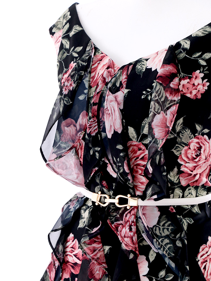 透け感のあるフリルレースとキャッチーな花柄が おしゃれなミニドレス