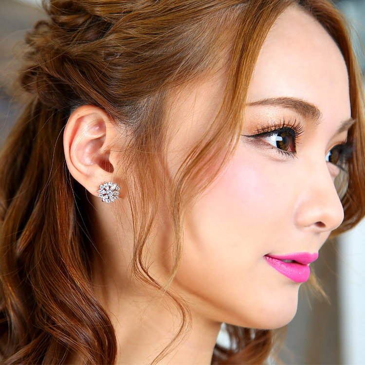 | 華やかなリーフモチーフピアス。 贅沢に散りばめられたストーンがキラキラ輝く、ドレスにピッタリなアクセサリーです。 金属アレルギーの方でも肌荒れせずにご使用頂けるハイクオリティーな仕上がりです。 (※個人差がございます。) |
