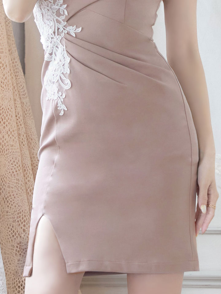 SALE!ワンショルダー刺繍ドレス/ノースリーブ/タイトスカート/胸元見せ/ミニドレス/キャバドレス【S-Mサイズ/1カラー】[OF03] [【YN】dzk [4586YNdzk-2203-1]