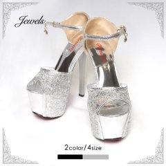 ストラップ/ビジュー/12cmヒール/厚底/グリッター/ラメ/サンダル【34-40サイズ/3カラー】[OF02] [S616]
