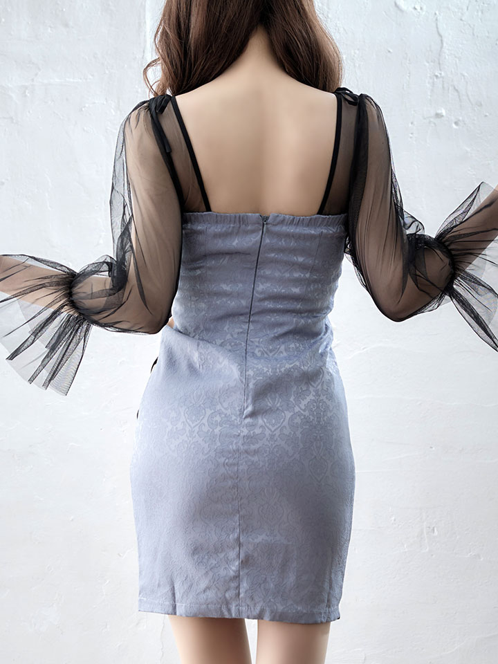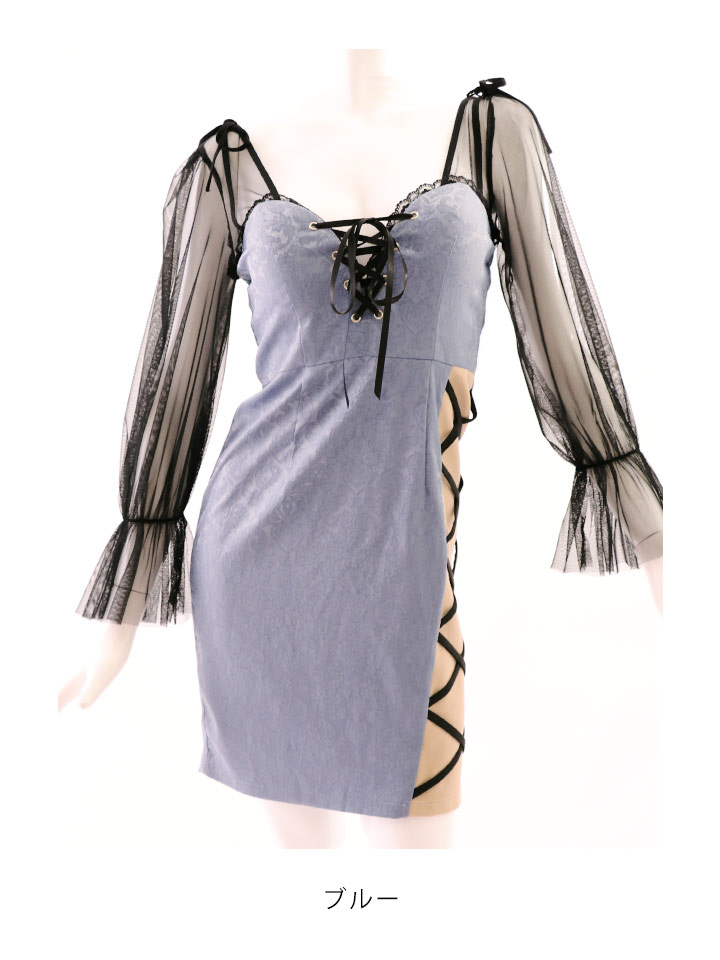 サイドシアーレイヤードドレス/シアー/谷間見せ/タイト/キャバドレス/ミニドレス【S-Lサイズ/2カラー】[OF03-U]【YN】dzj