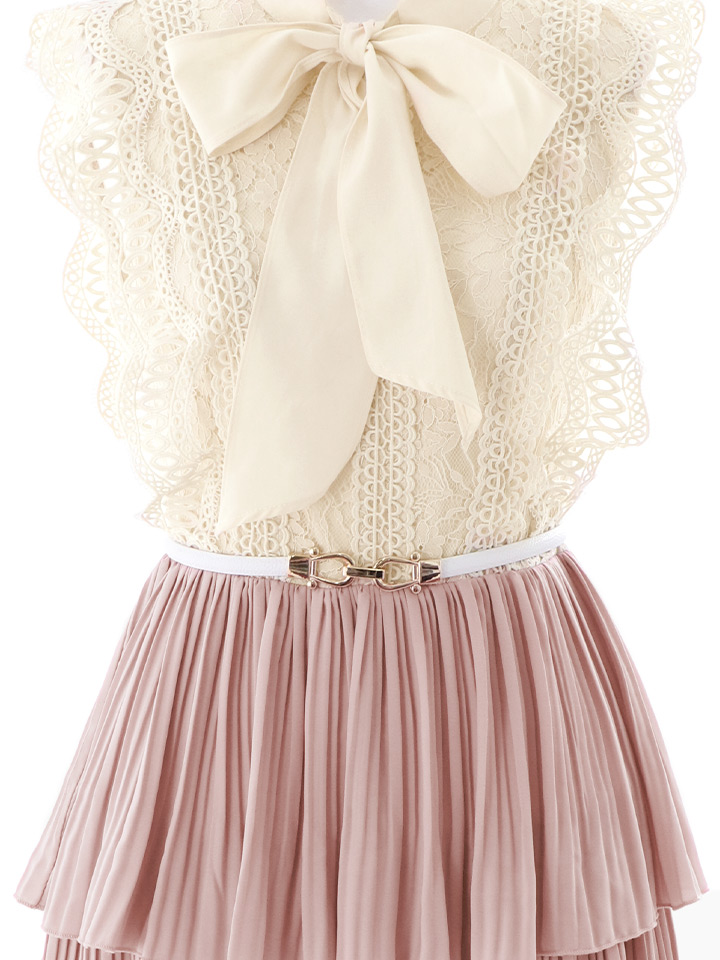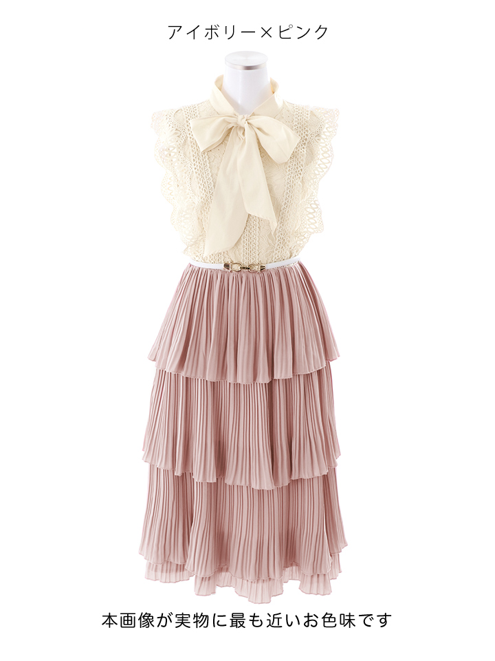 プリーツをあしらったティアードが可愛く華やかな素敵で女性を演出してくれます。