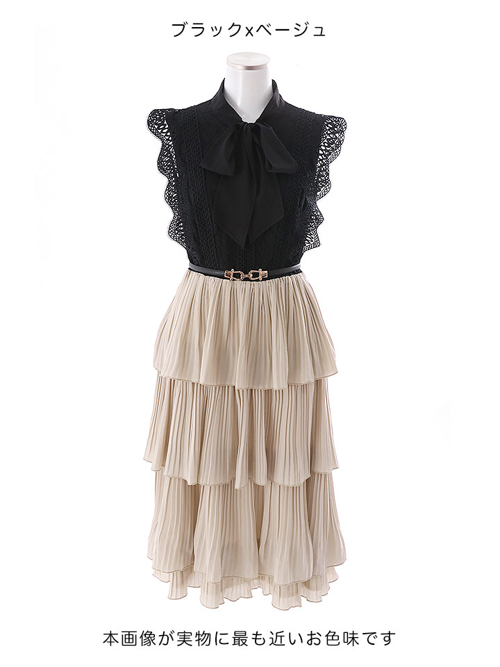 SALE!再入荷!バイカラーティアードワンピースドレス/レース/リボン/プリーツ/フレアー/ワンピース/ベルト/無地/胸元隠し/背中隠し/ミディアム丈/キャバドレス/パッド無し/【M-XLサイズ/1カラー】[OF03-X] 【YN】dz [4462YNdzk-2204-2]