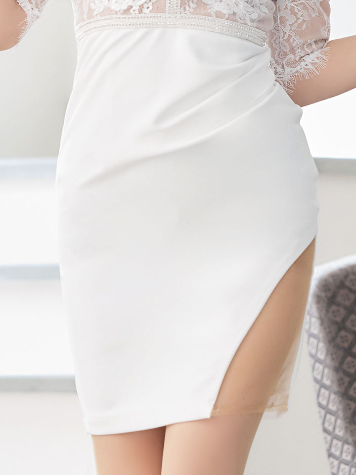 SALE!刺繍レースドレス/シアー/半袖/谷間見せ/背中見せ/タトゥー隠し/ミニドレス/キャバドレス 【S-XLサイズ/1カラー】[HC02-U] 【YN】dzw [4717YNdzw-2209-1]
