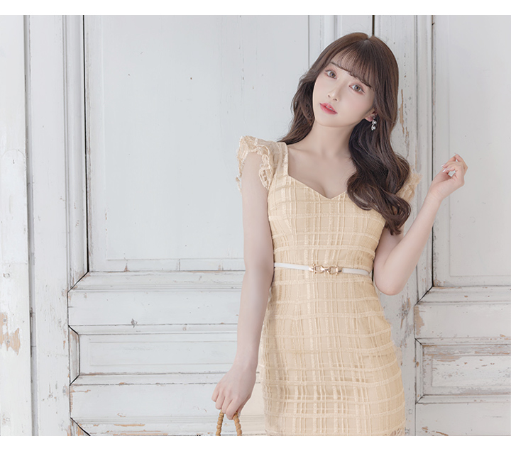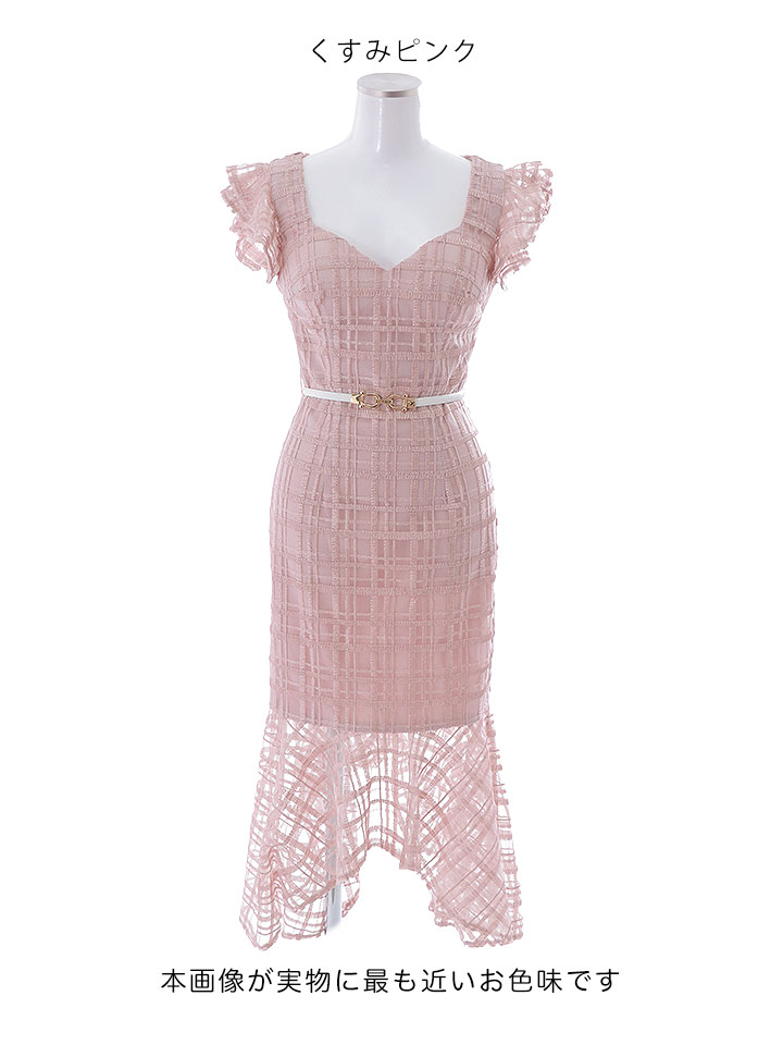 【sifeel/シフィール】チェック柄レース/フリル/ベルト付/背中隠し/ワンピース/マーメイドスカート/キャバドレス/ミディアムドレス【S-XLサイズ/2カラー】[OF03-X] 【YN】