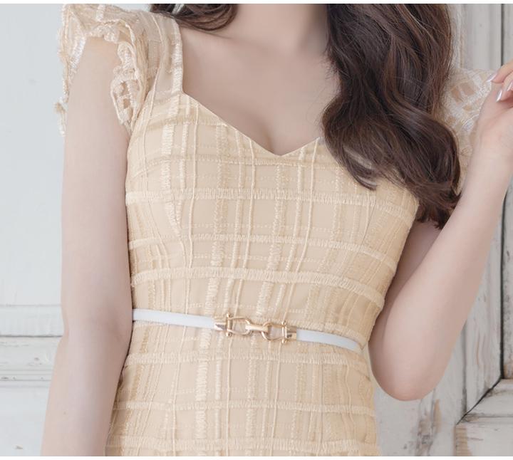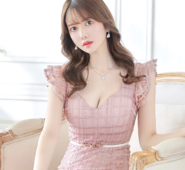 【sifeel/シフィール】チェック柄レース/フリル/ベルト付/背中隠し/ワンピース/マーメイドスカート/キャバドレス/ミディアムドレス【S-XLサイズ/2カラー】[OF03-X] 【YN】 [4555YNdzw-2209-1]