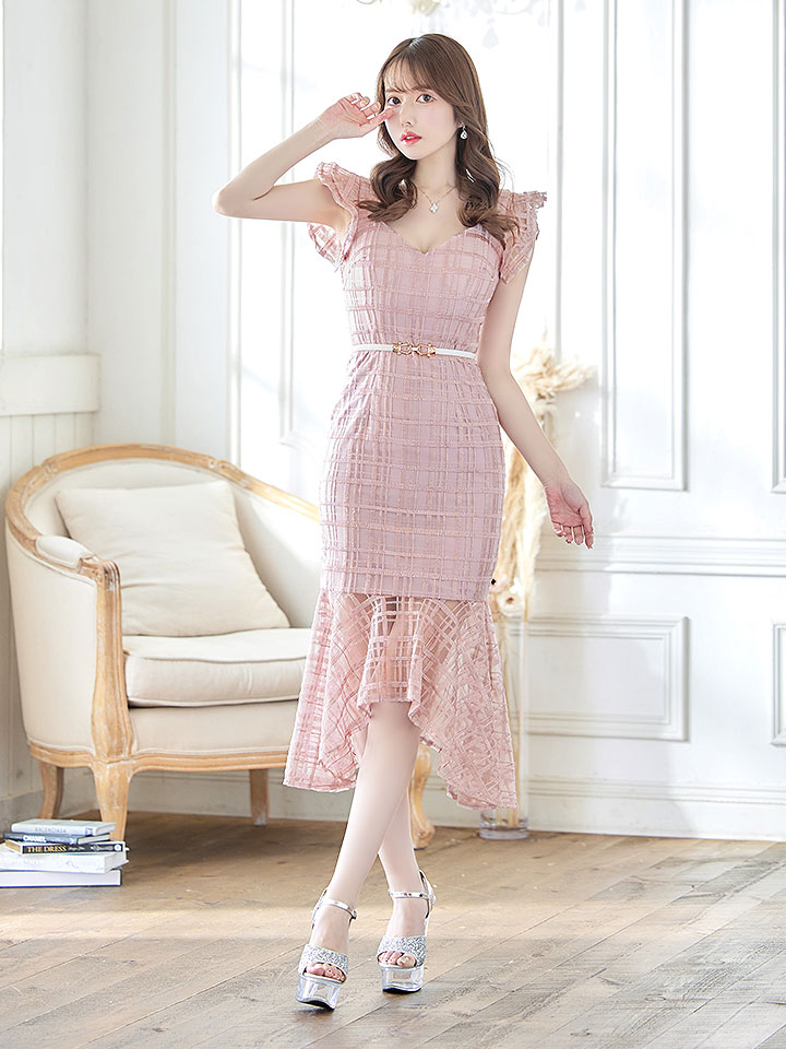 #ピンク #ベージュ #ネクスト銀座 ゆめ #Rちゃん着用 #ミディアムドレス #レース #チェック柄 #半袖,ショートスリーブ #谷間見せ(魅せ) #背中隠し(ブラOK) #マーメイド #お姉さん系(WEEKLY)人気ランキング-3/14更新 (ワンピース)