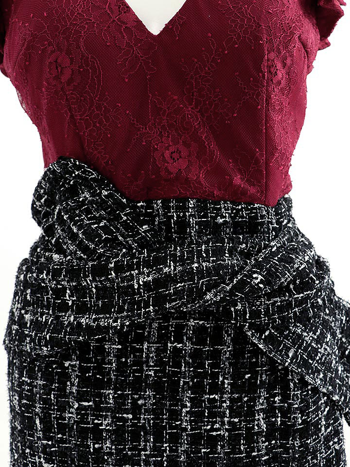 SALE!ツイード/フリル/バイカラー/胸元見せ/タイトスカート/ビジュー/キャバドレス/ミニドレス【S-Lサイズ/1カラー】[OF03-U] 【YN】dzw [4441YNdzw-2210-1]