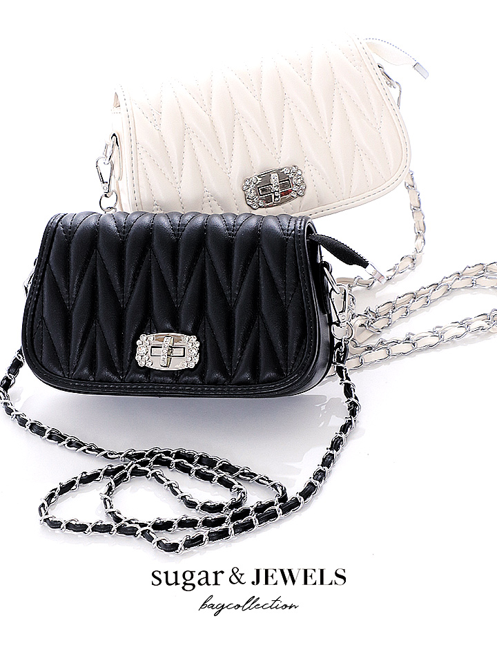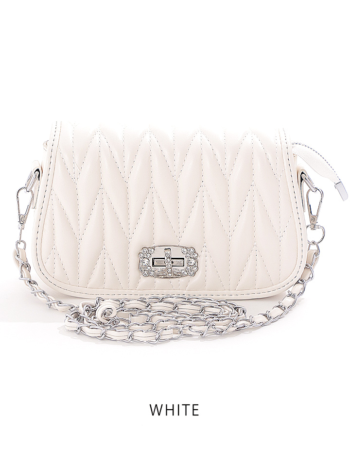 キルティングショルダービジューバッグ/キルティング/ショルダー/ビジュー/チェーン【Fサイズ/2カラー】[OF04] [B066IM-2301-1]