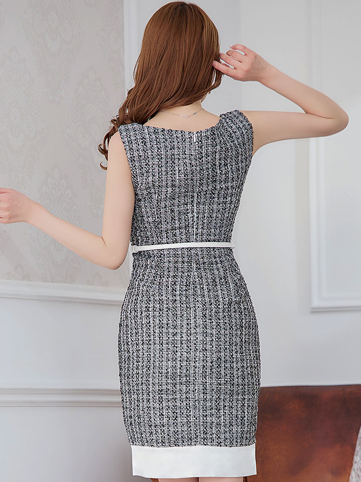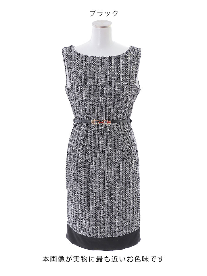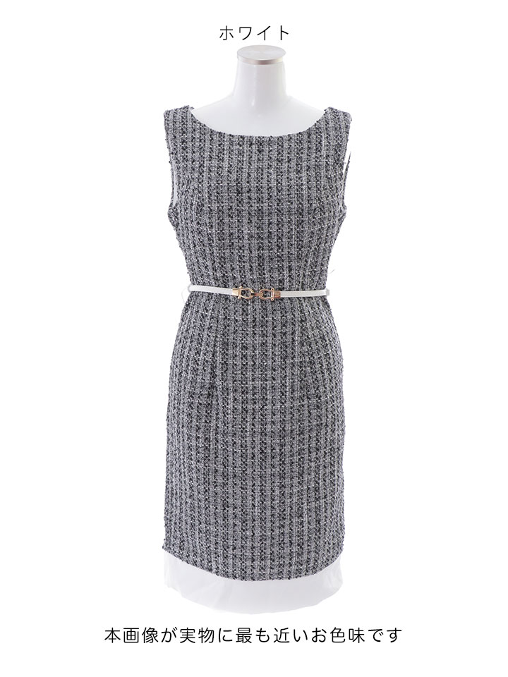 SALE!【Glera/グレイラ】ツイード/バイカラー/ベルト/ノースリーブ/谷間隠し/背中隠し/ミディアムドレス/キャバドレス 【S-Lサイズ/2カラー】[OF01] 【SB】dzw [7886SBdzw-2301-1]