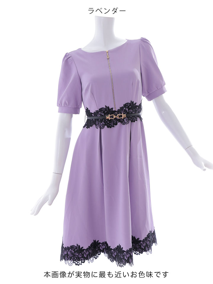 SALE!【sifeel/シフィール】Aラインワンピースドレス/フレアー/ジップアップ/刺繍レース/ベルト/谷間隠し/背中隠し/ミディアムドレス/キャバドレス/パッド無し【S-XLサイズ/3カラー】[OF03-X] 【YN】dzw [4711YNdzw-2302-2]