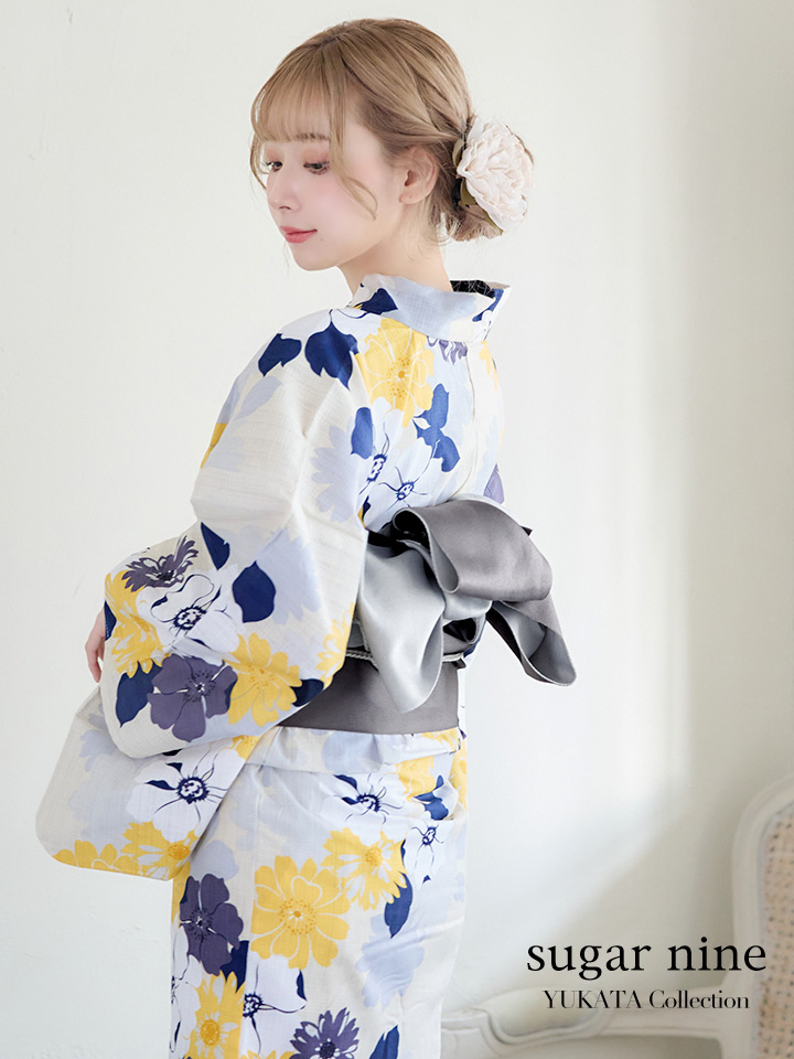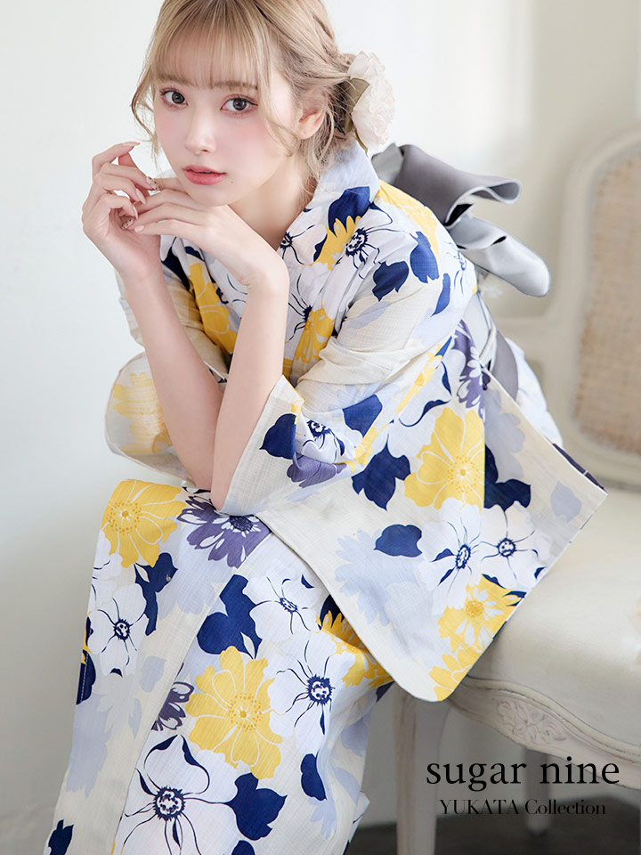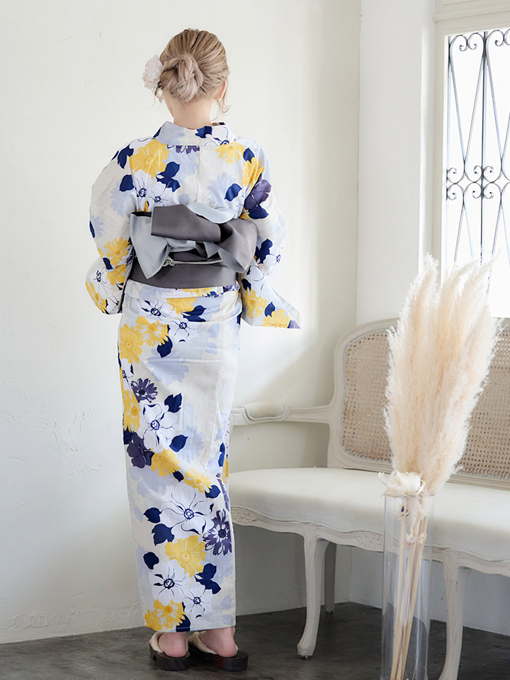 【即日発送】【浴衣】イエローとブルーのニュアンス花柄浴衣【YMT】