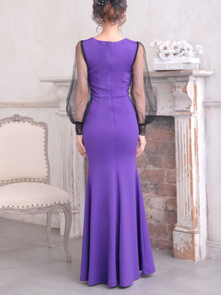 胸元のビジューとサイドシアーがセクシーなロングドレス