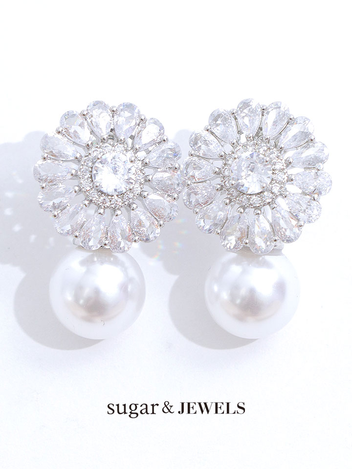 パールシルバービジューピアス【アクセサリー:ピアス】【OF02】 [PI031-230711-1]