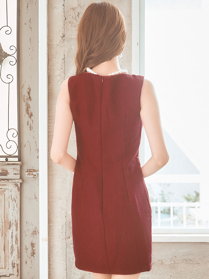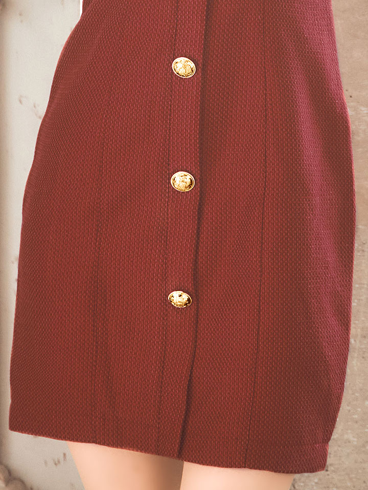 SALE!バーガンディドレス/ラウンドネック/ノースリーブ/ボタン/谷間見せ/ミニドレス/キャバドレス【S-Lサイズ/1カラー】[HC02] 【SB】dzc [2196SBdzc-230801-1]