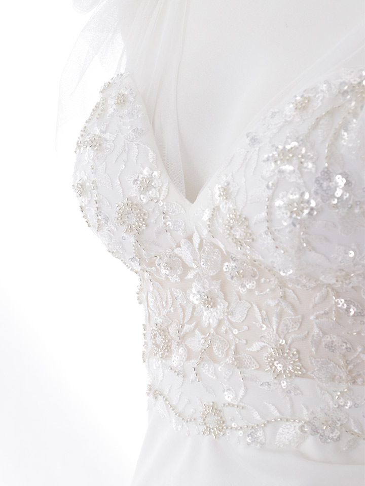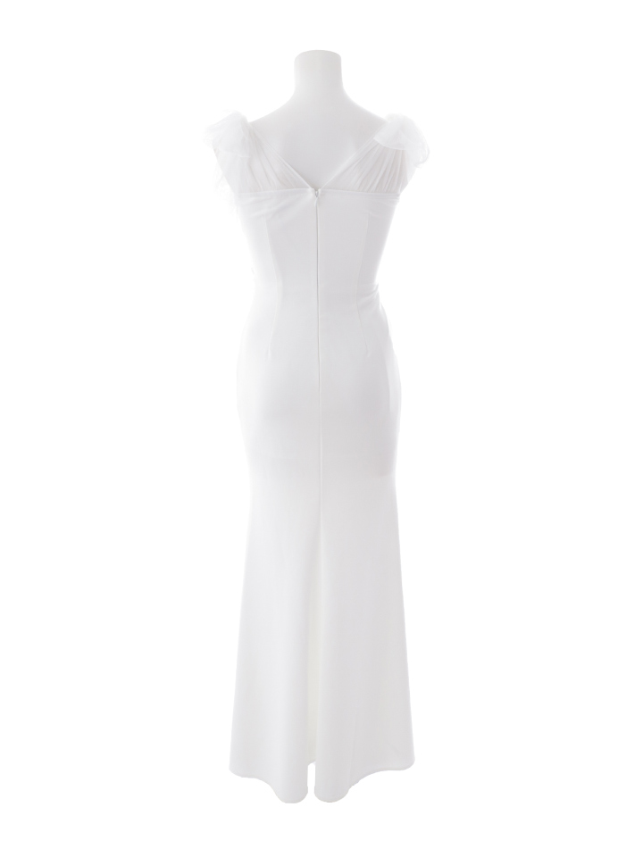 歩くたびにふわっと揺れるチュールと、計算されたボディラインのギャップに、誰もが心を掴まれる一着です。