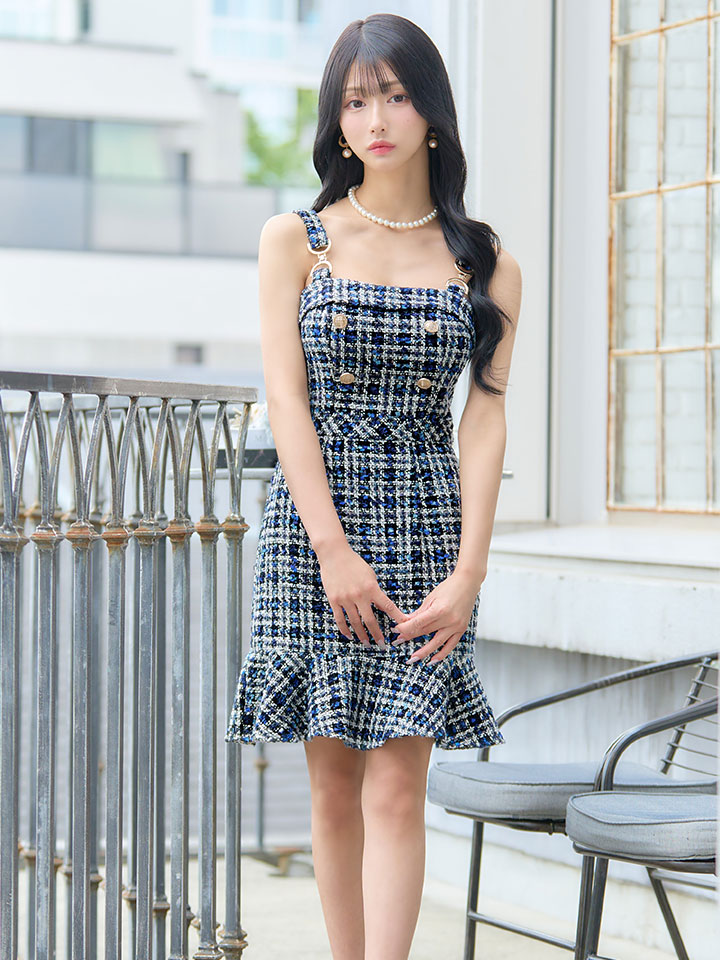 ツイードキャミソールドレス/谷間見せ/背中見せ/ミニドレス/キャバドレス【XS-Mサイズ/1カラー】[HC02] 【YN】dzw