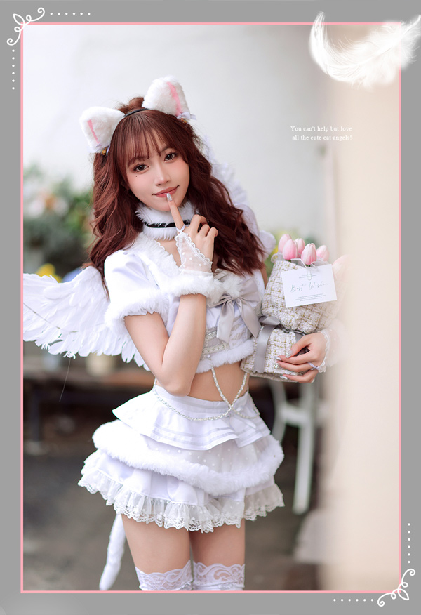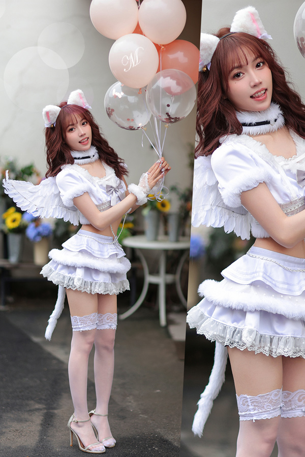 【即日発送】猫耳天使【マリームーン】【ハロウィンコスプレ8点セット】【フリーサイズ/1カラー】[OF04] [LZ002ML]