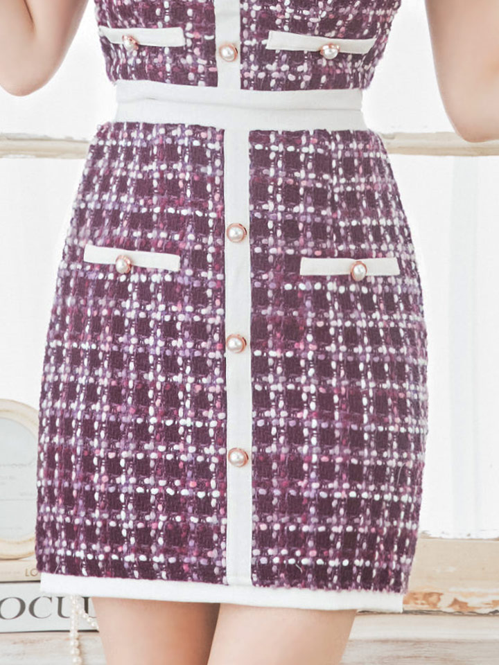 チェック柄セットアップツイードミニドレス/キャバドレス【XS-Sサイズ/2カラー】[HC02] 【SB】dzw [7979SBdzw-230927-3]