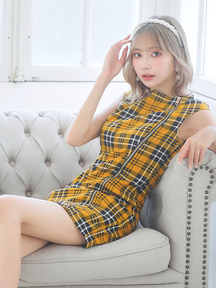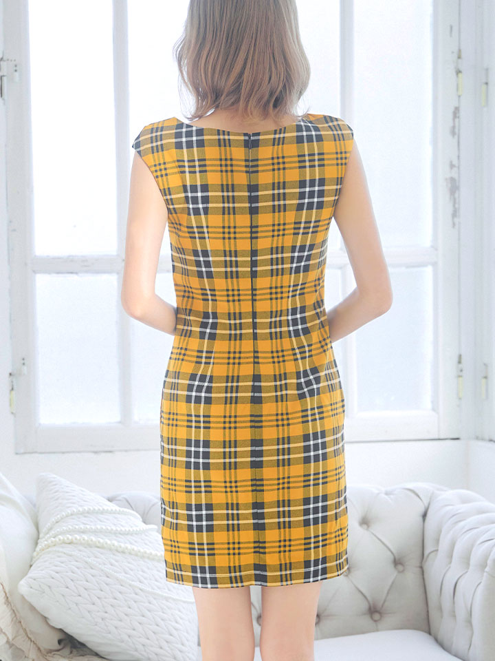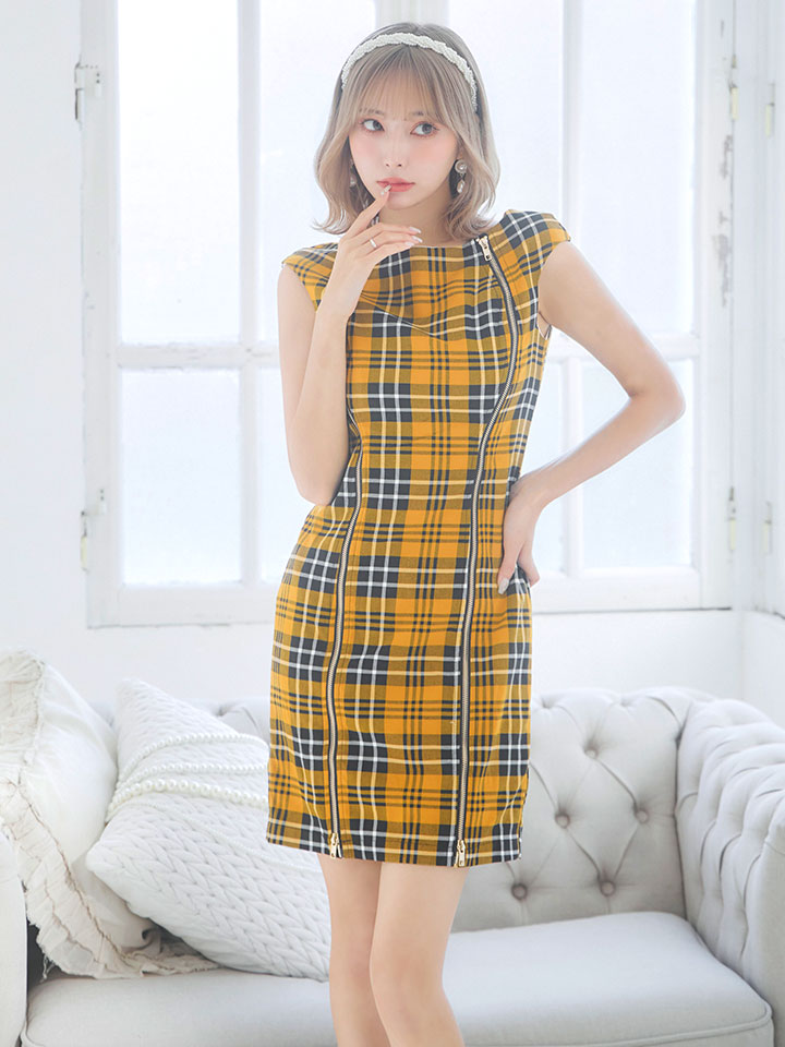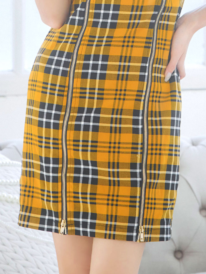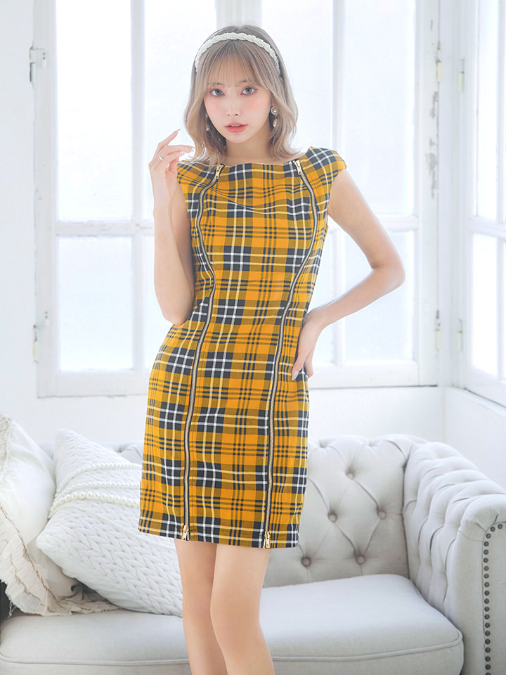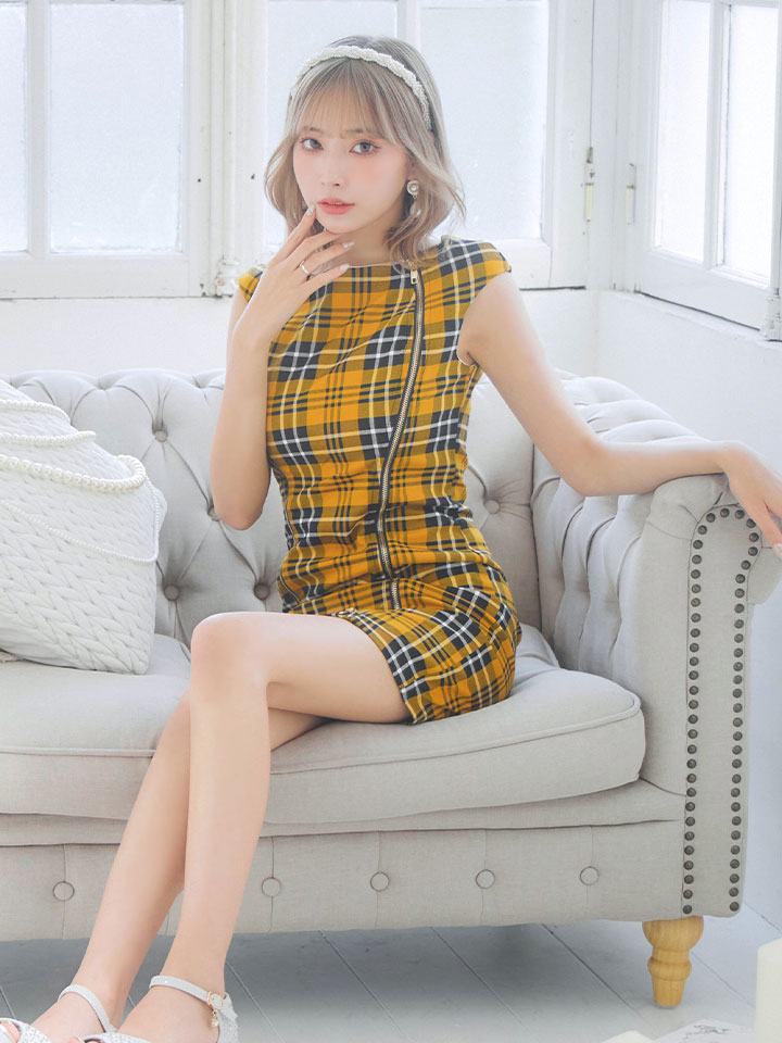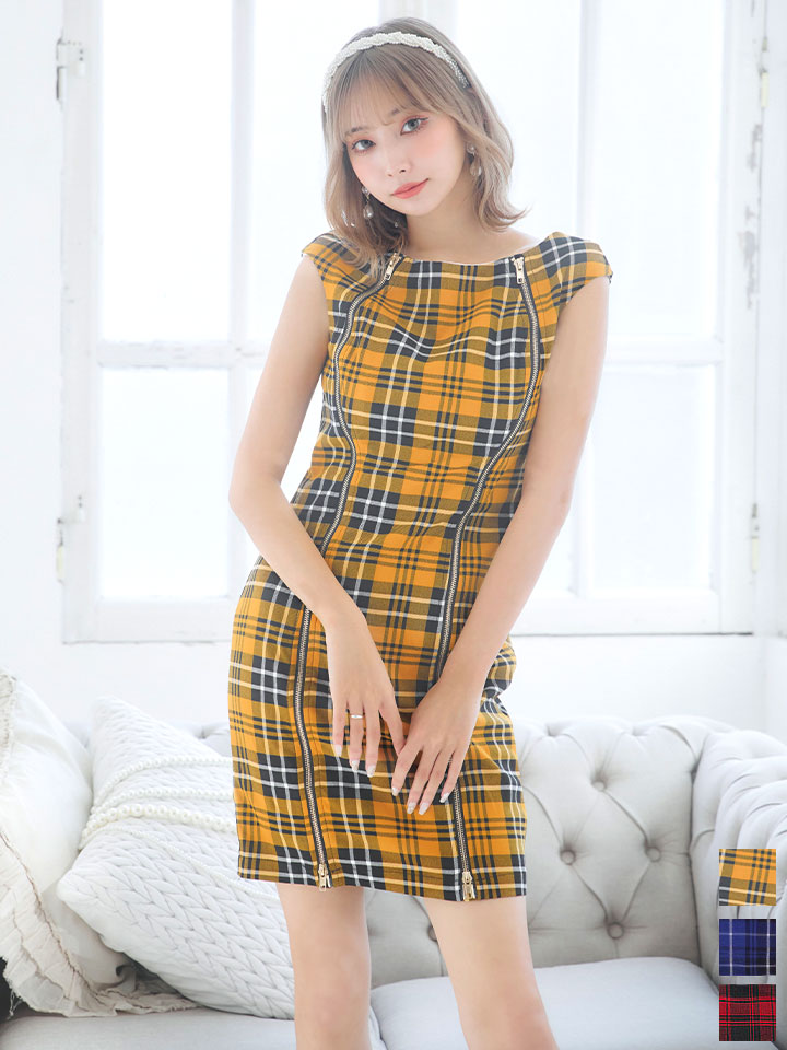 SALE!タータンチェックタイトドレス/ノースリーブ/ファスナー/胸元隠し/背中隠し/タイト/ミニドレス/キャバドレス/パッド無し/ワンピース 【XS-Lサイズ/3カラー】[OF01A]【SB】dzw [7873SBdzw-231013-1]