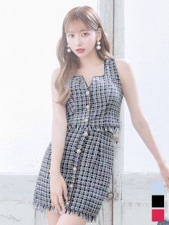 ジャケットワンピ/ドレス/ツイード/襟/ジップアップ/ミニドレス/キャバドレス【S-Mサイズ/3カラー】[HC02-X] 【YN】dzw