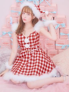【即日発送!】【サンタコス 5点セット】【XS-Lサイズ/2カラー】ギンガムチェック セットアップフレアコスプレ[OF01]