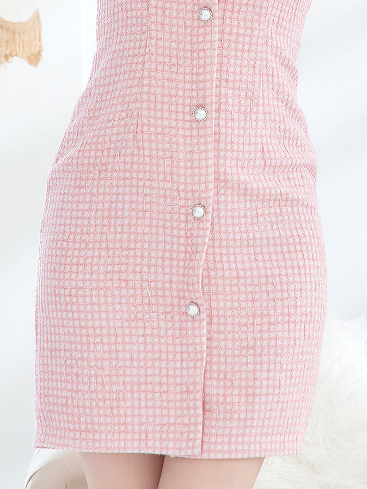 パールボタンシアースリーブチェック柄ドレス/キャバドレス【XS-Lサイズ/1カラー】[HC02] 【YN】dzw [4980YNdzw-231107-2]