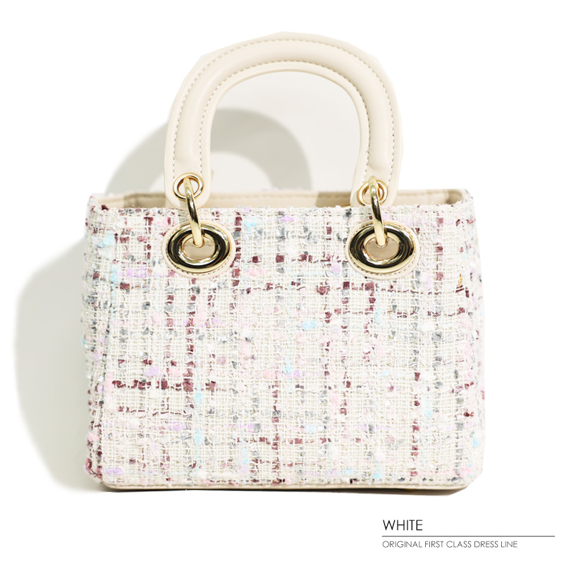 愛らしさ溢れるツイード生地が華やかさ溢れるアイテムとなっております。