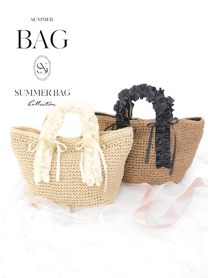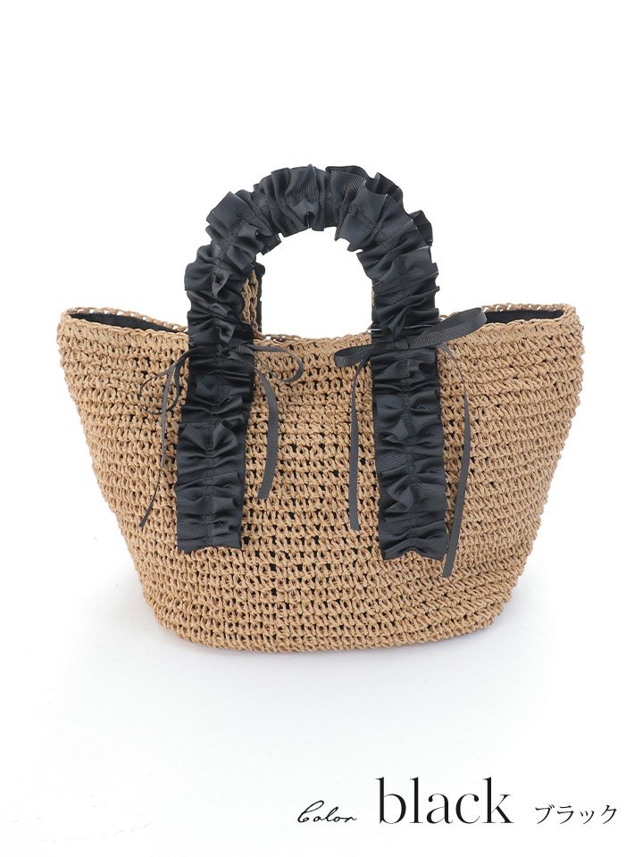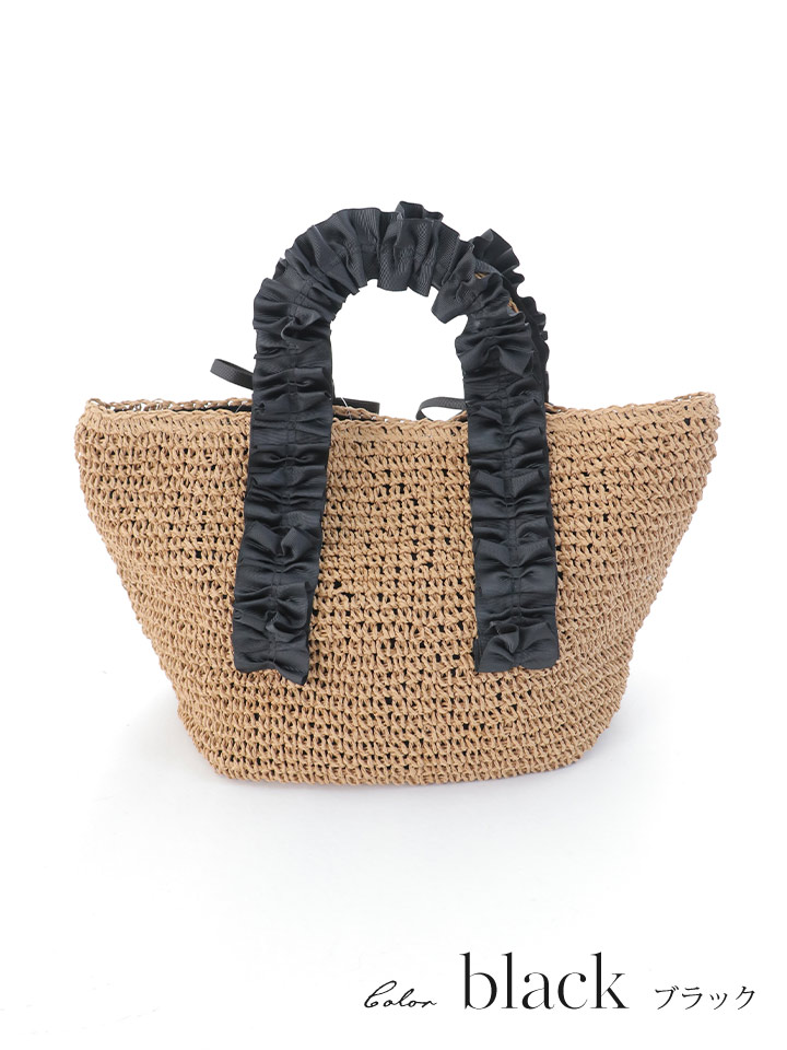 【バッグ】フリルハンドルカゴバッグ【Fサイズ/2カラー】[YMT] [B1053-250627-1]