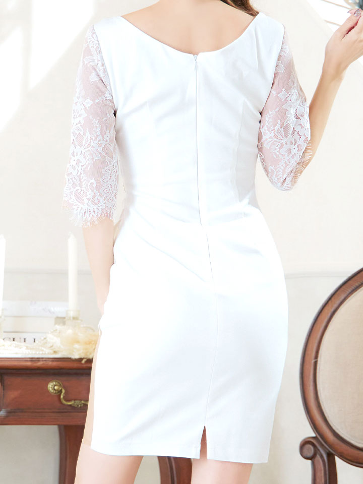 SALE!刺繍レースドレス/シアー/半袖/谷間見せ/背中見せ/タトゥー隠し/ミニドレス/キャバドレス 【S-XLサイズ/1カラー】[HC02-U] 【YN】dzw [4717YNdzw-231226-1]