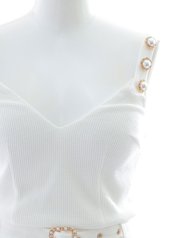 キャミソール/セットアップ/ベルト/パール/ワッフル生地/ミニドレス/キャバドレス【S-Mサイズ/2カラー】[OF03] 【YN】dzw