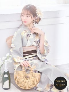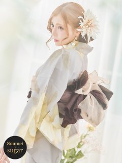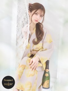 ベージュ地×イエローのピオニーが可愛い大人浴衣。