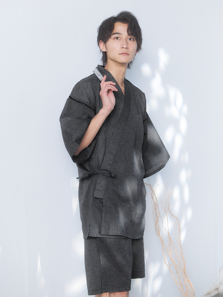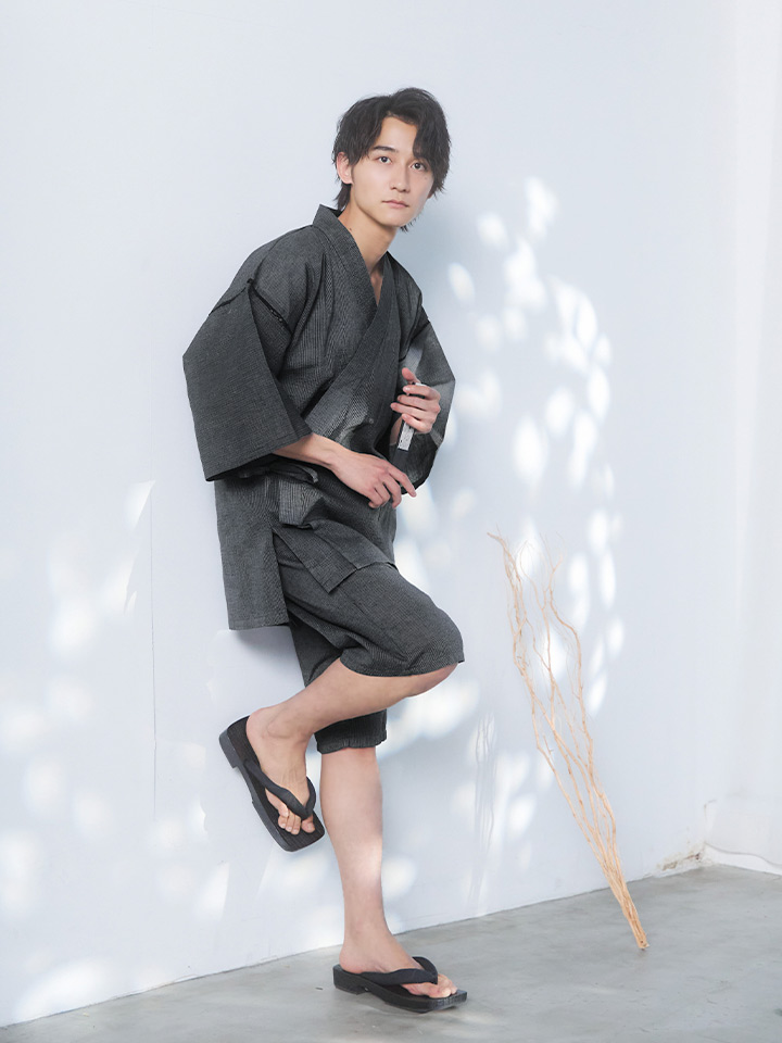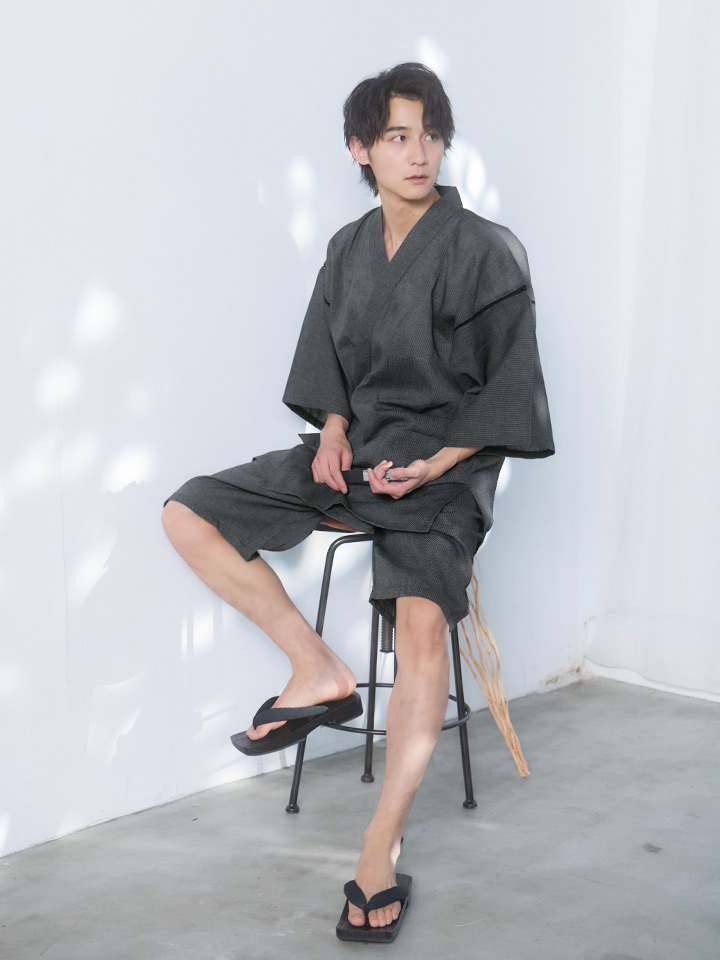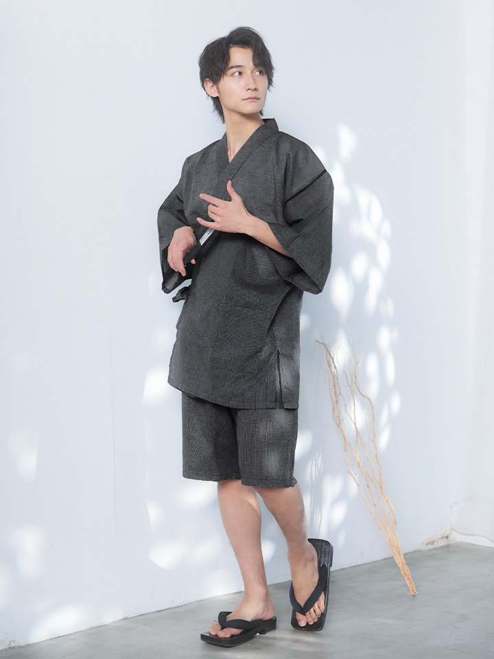 【即日発送】【メンズ甚平】ダークグレー甚平【甚平・下駄セット】[OF04] [MSJ-005-kj-B-24ON]