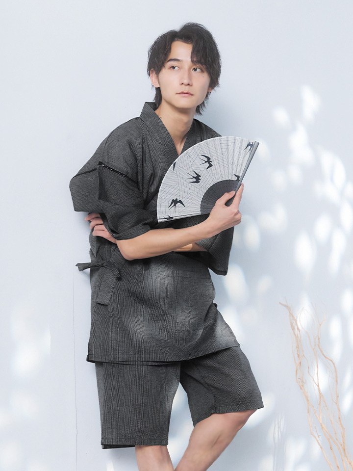 【即日発送】【メンズ甚平】ダークグレー甚平【甚平・下駄セット】[OF04]