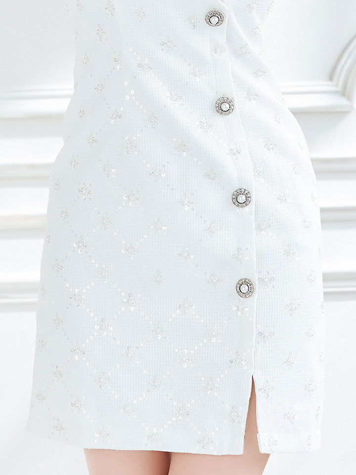 ノースリーブドレス/パール/ビジュー/ボタン/谷間見せ/背中隠し/ミニドレス/キャバドレス【XS-Lサイズ/2カラー】[OF03-X] [5122YNdzw-240426-1]