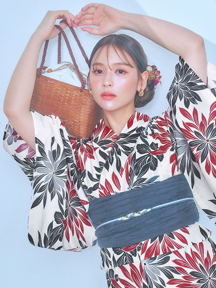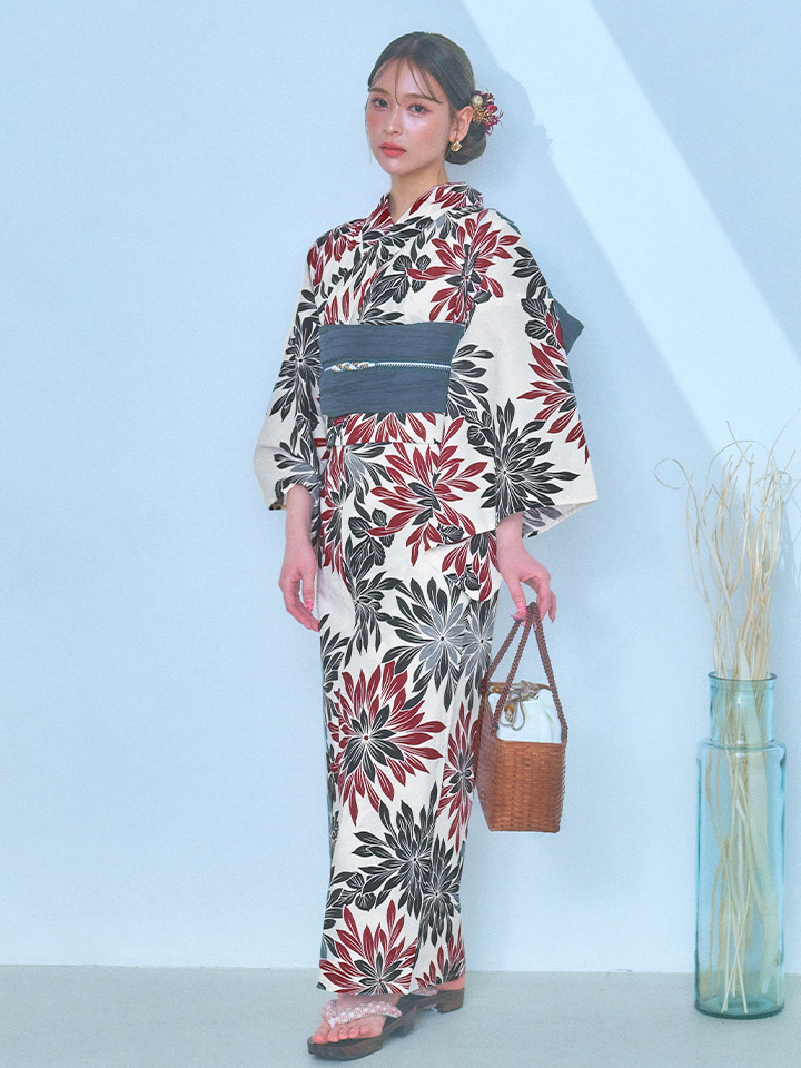【即日発送】ネイビー&レッドフラワーモダン浴衣 【浴衣3点セット 浴衣/帯/下駄】[YMT] [Y-9021-ok-W-F-24IE]