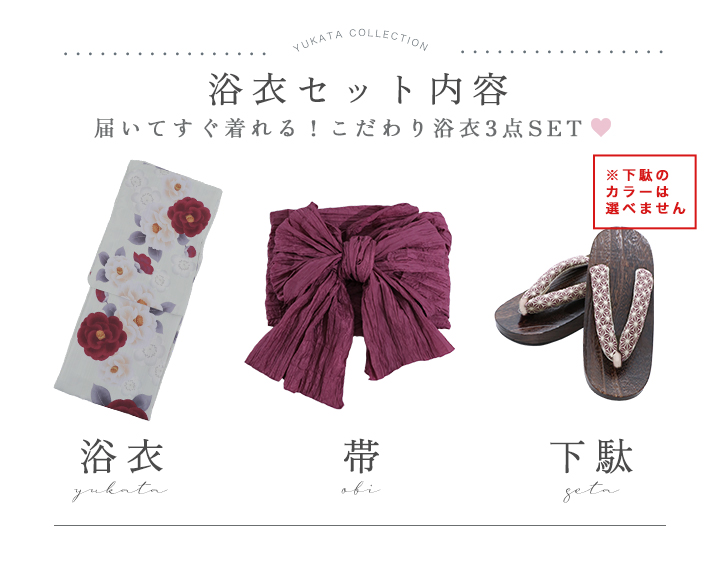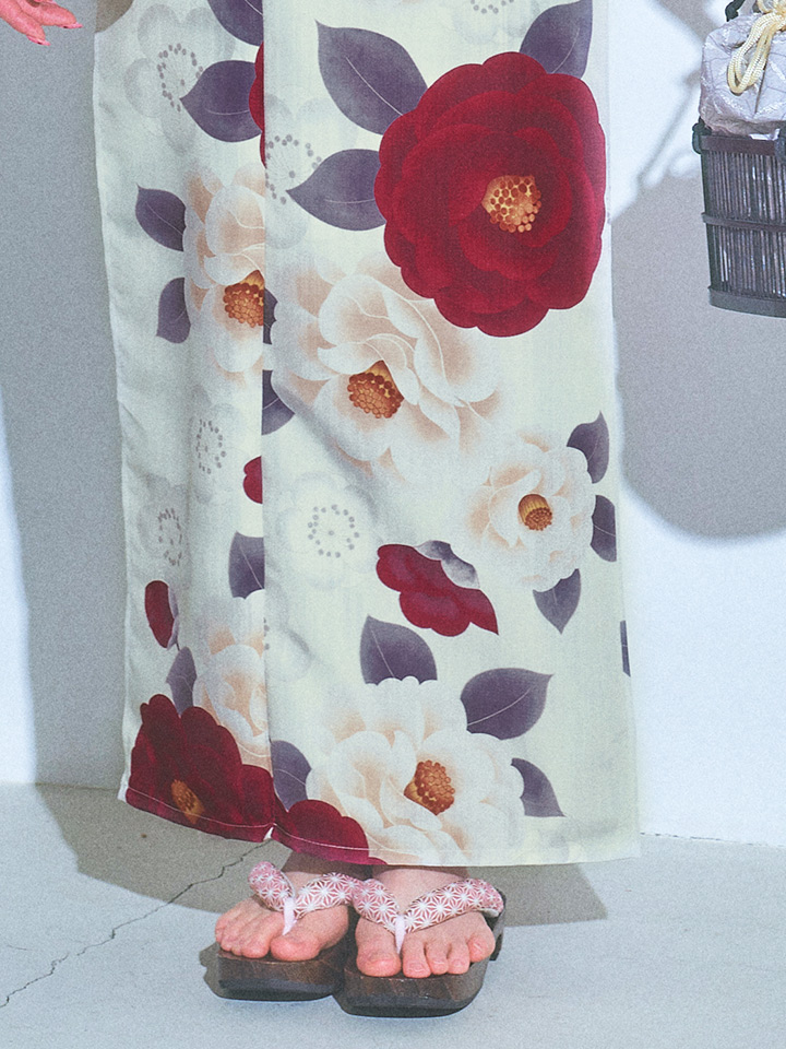 【即日発送】ホワイト&レッド椿浴衣 【浴衣3点セット 浴衣/帯/下駄】[OF04] [Y-9023-ok-W-F-24IE]