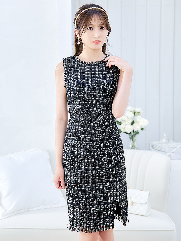 SALE!ノースリーブツイードドレス/スリット/胸元隠し/背中隠し/ミニドレス/キャバドレス/ワンピース【S-Lサイズ/9カラー】[OF03] 【YN】dzw [4509YNdzw-240621-1]