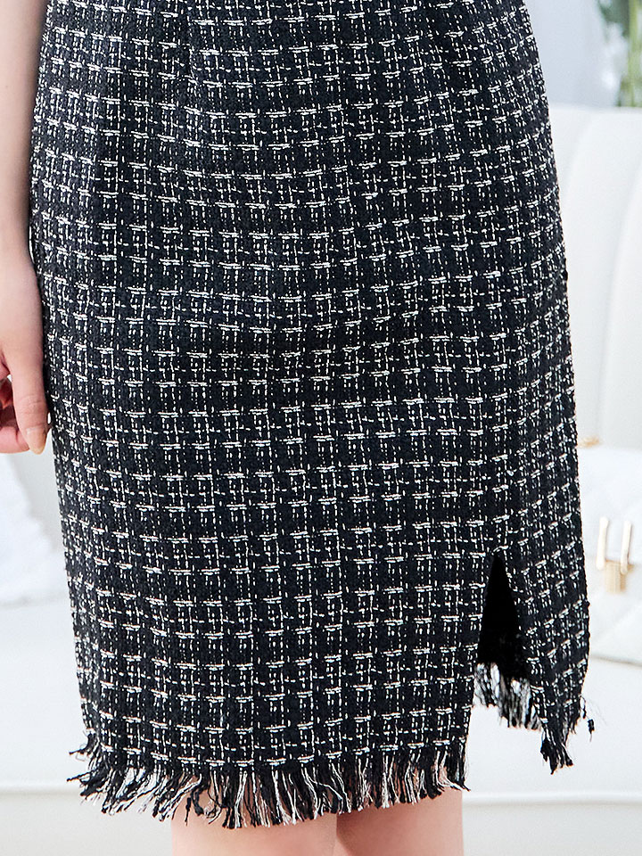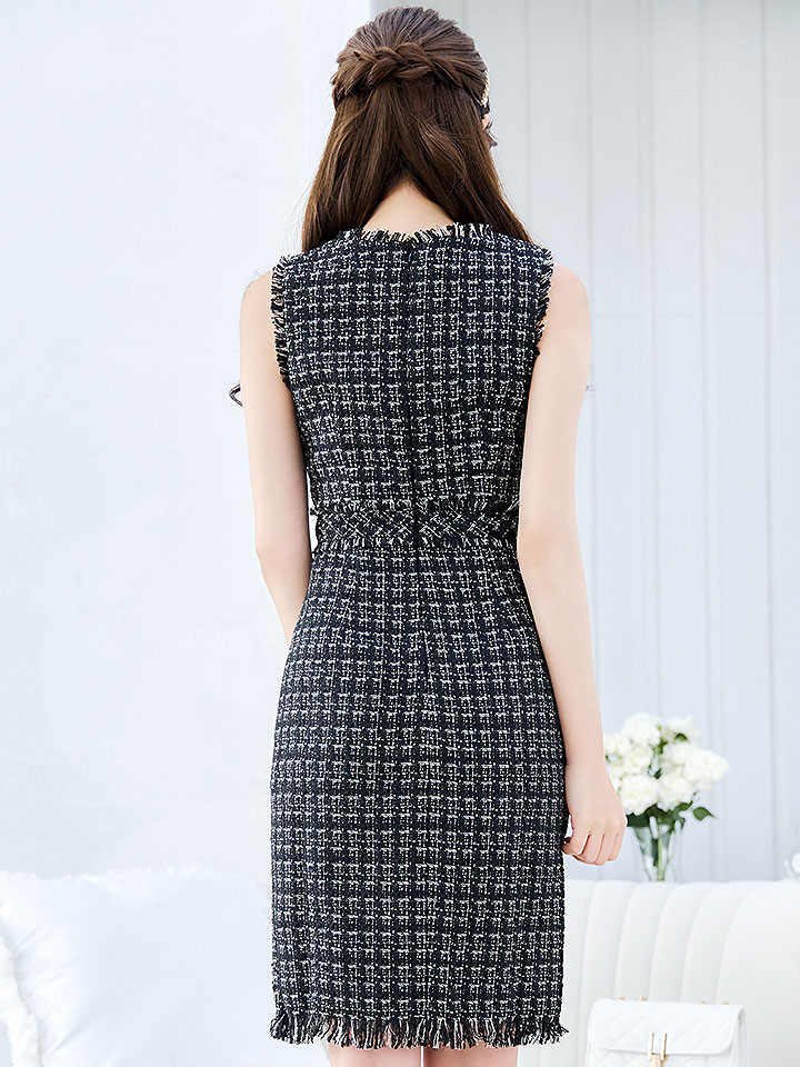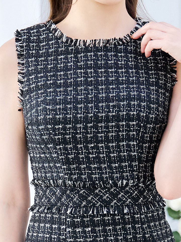 ノースリーブ&ツイードのデザインが大人かわいいドレス。